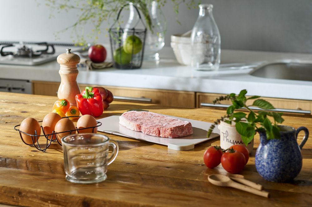 熱伝導率の高いアルミニウム製で、冷凍食材のスピード解凍を促します。