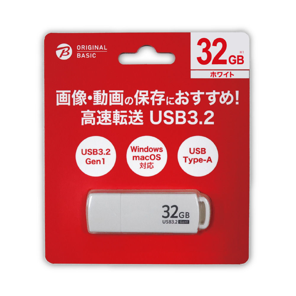 | 商品名 | USBメモリ (Mac/Windows11対応) ホワイト OB-UM3A032G [32GB /USB TypeA /USB3.2 /キャップ式] |