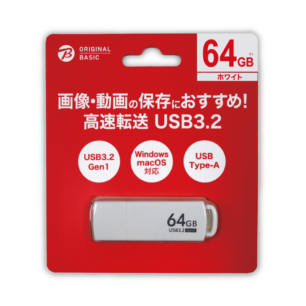 商品名 | USBメモリ (Mac/Windows11対応) ホワイト OB-UM3A064G [64GB /USB TypeA /USB3.2 /キャップ式] |
