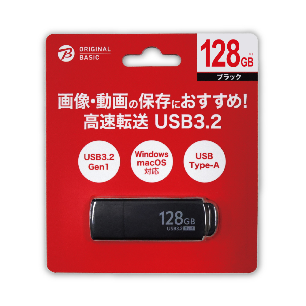 | 商品名 | USBメモリ (Mac/Windows11対応) ブラック OB-UM3A128G [128GB /USB TypeA /USB3.2 /キャップ式] |