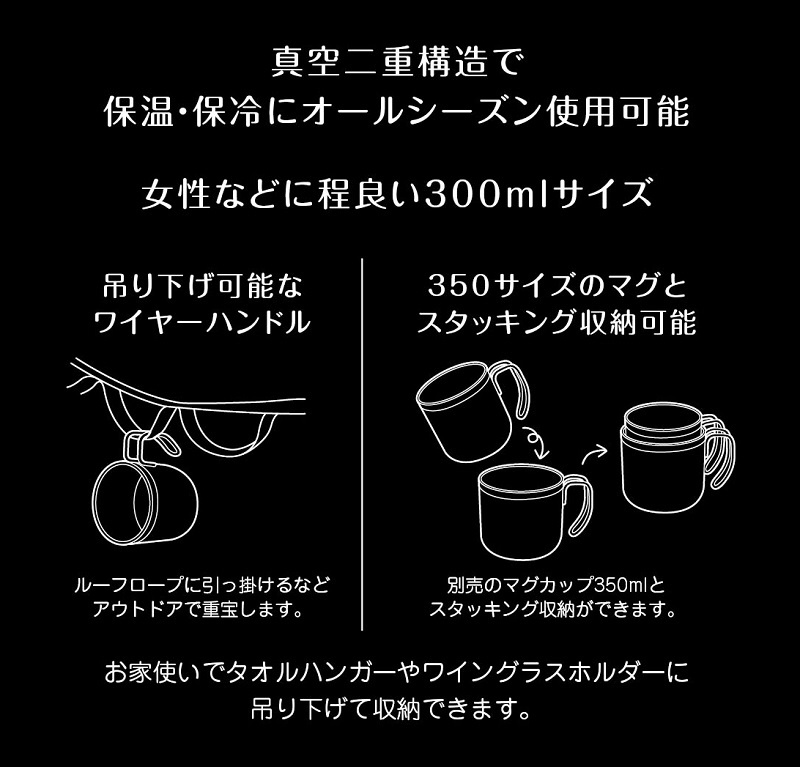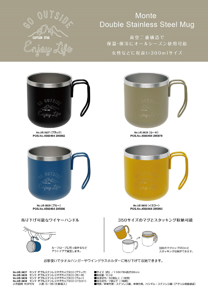 姉妹品のモンテダブルステンレスマグカップ350へスタッキング収納が可能。