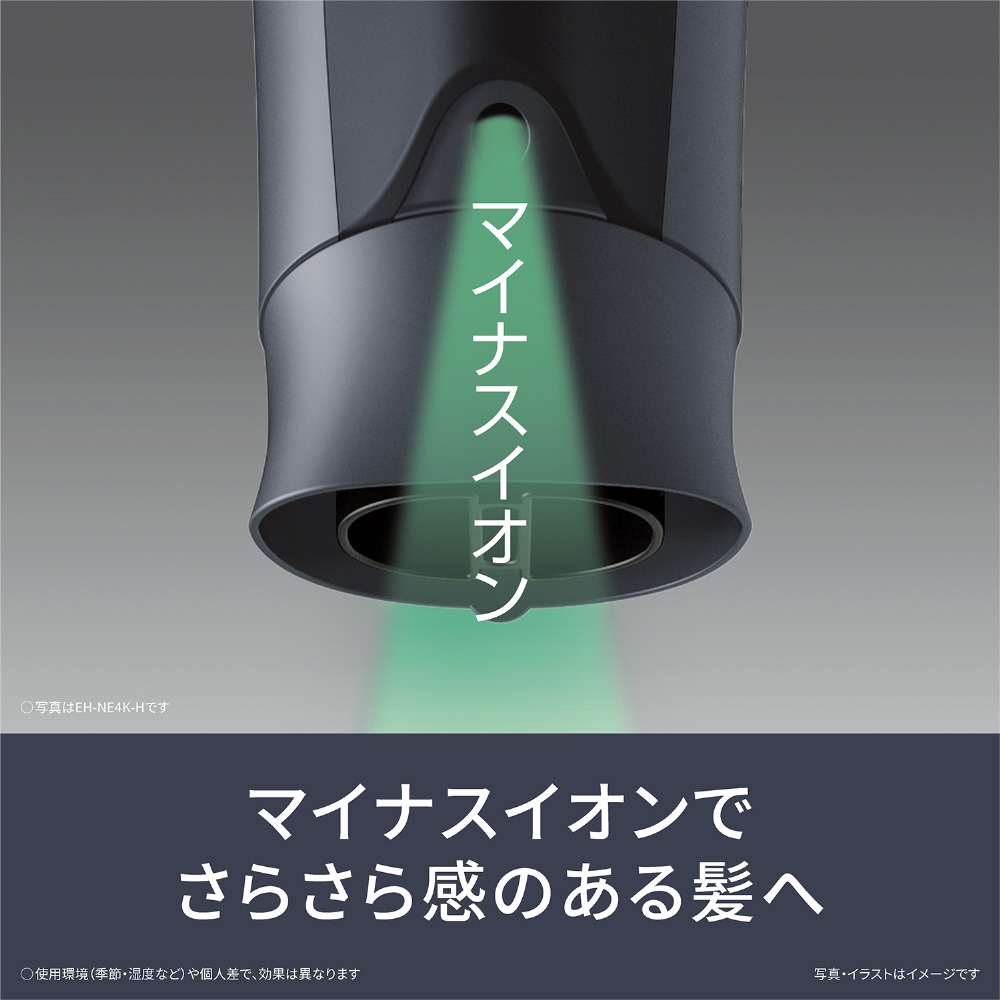 外付けマイナスイオンで、マイナスイオンに含まれる水分を熱から守り、髪にしっかり届いて、さらさらな髪へ