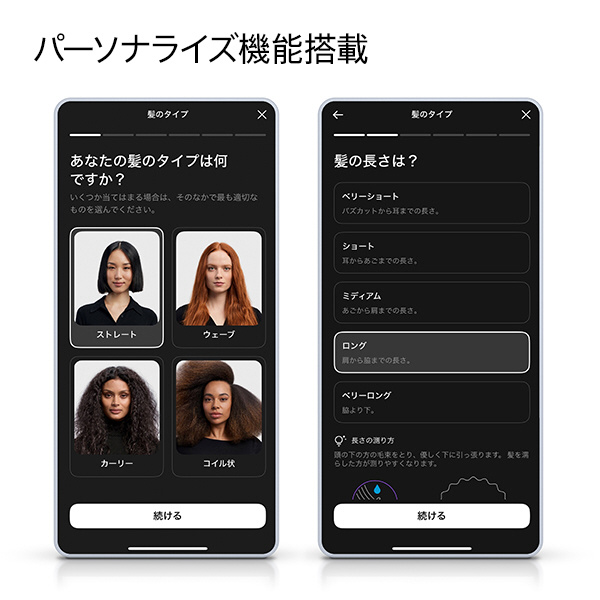 ダイソン初MyDyson(TM)アプリ対応のヘアケア製品。簡単な質問に答えるだけで、あなたの髪質にあったカールをパーソナライズ。