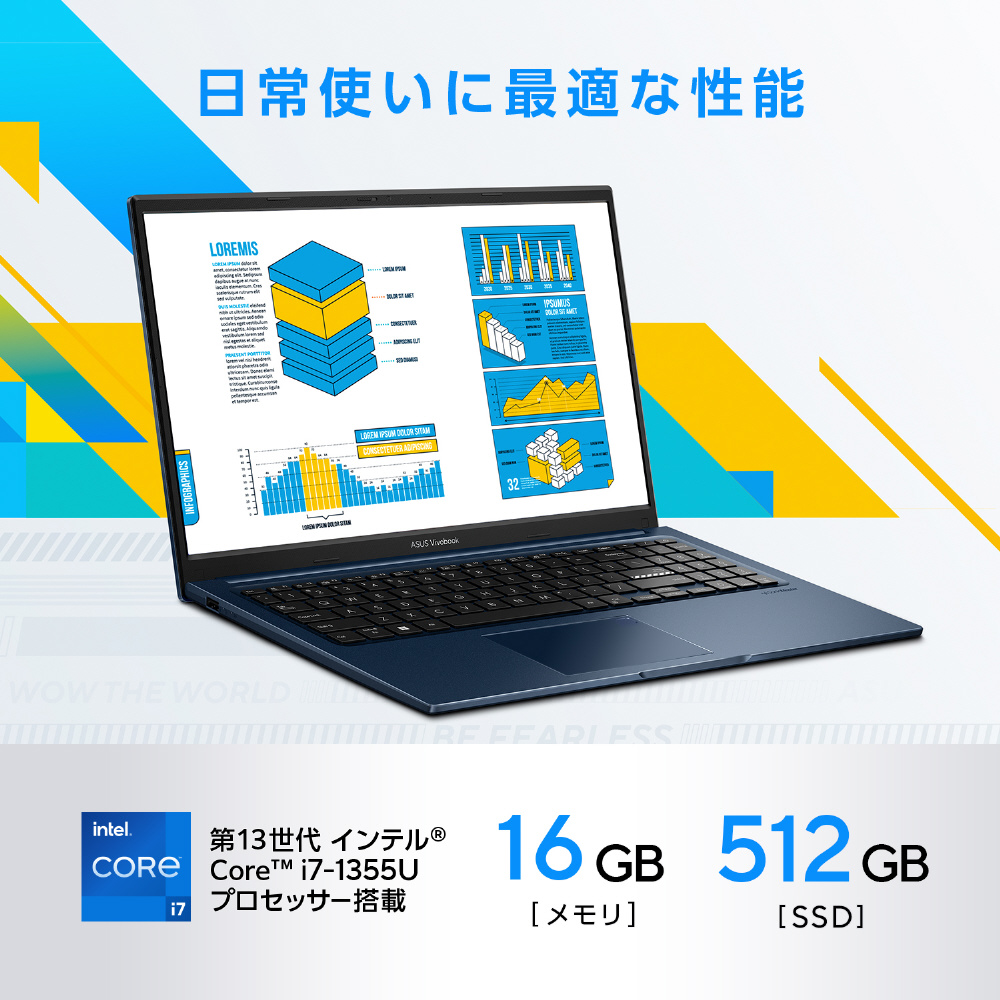 ノートパソコン Vivobook 17 クワイエットブルー X1704VA-I7165WS [17.3型 /Windows11 Home /intel Core i7 /メモリ:16GB /SSD:512GB /Office HomeandBusiness /日本語版キーボード /2025年01月モデル] 【sof001】