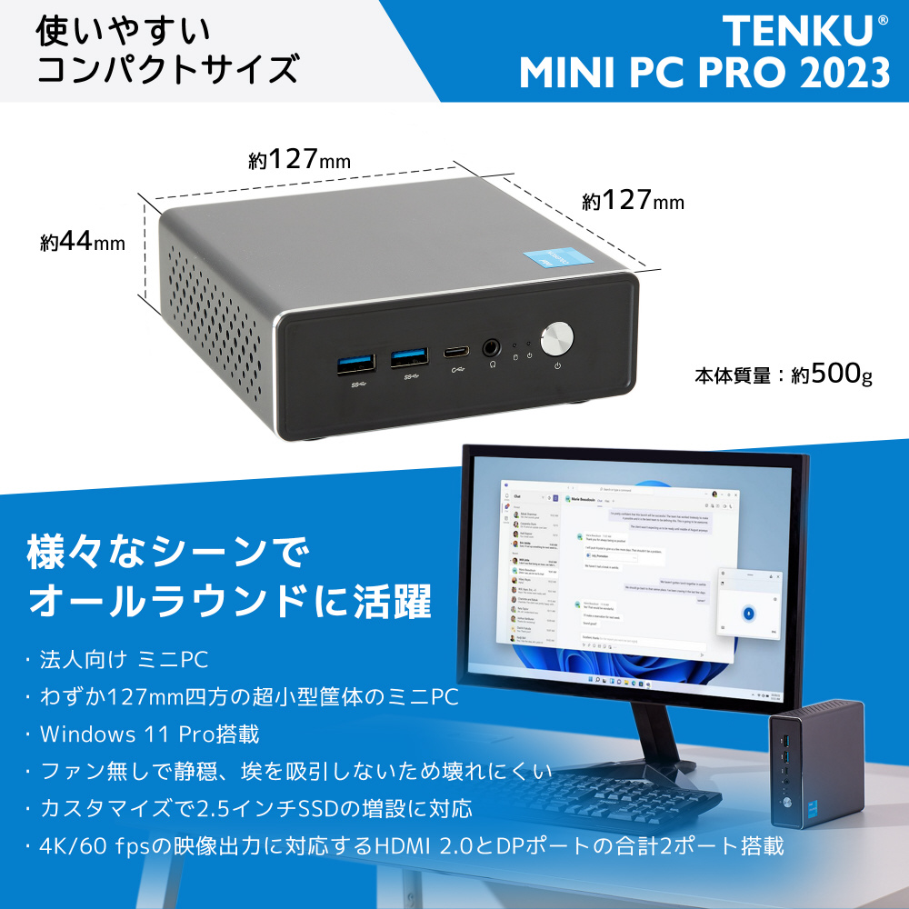 高性能・ファンレス・省スペースと3拍子揃ったスタンダードモデルがパワーアップして、TENKU MINI PC PRO 2023が登場。