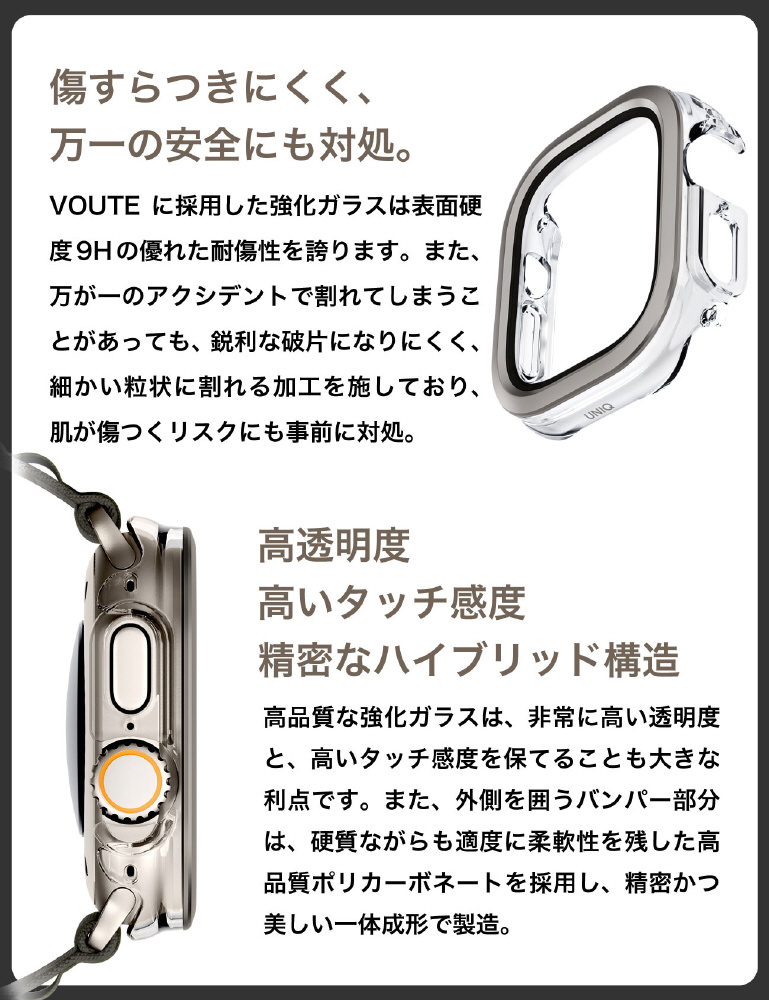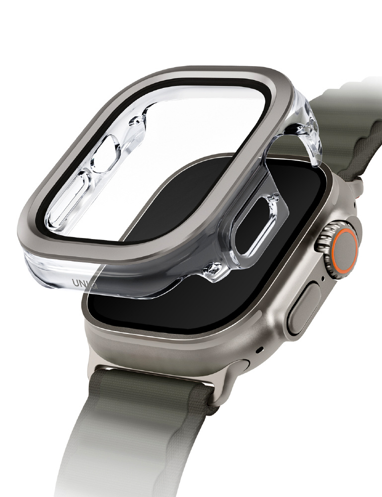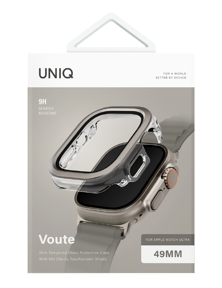 49MM Apple Watch Ultra 2 UNIQ VOUTE WATCH CASE WITH TEMPERED GLASS SCREEN VOUTE TITANIUM SILVER UNIQ-49MM-VOUTSIL