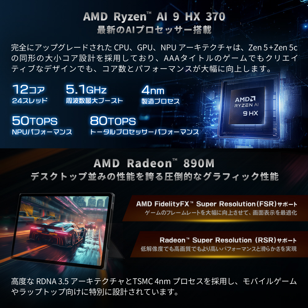 ポータブルゲーミングPCモード、パームタブレットモード、ノートブックモードの3役を1台でこなせる10.95インチの2.5Kスクリーン、高リフレッシュレート 120Hz のオールインワンデバイスです。
