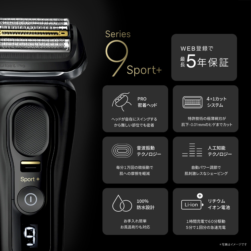 | 商品名 | ブラウン シリーズ9 Sport+ 9350cc【洗浄機モデル/海外対応】 アトリエブラック 9350cc [4枚刃 /AC100V-240V] |