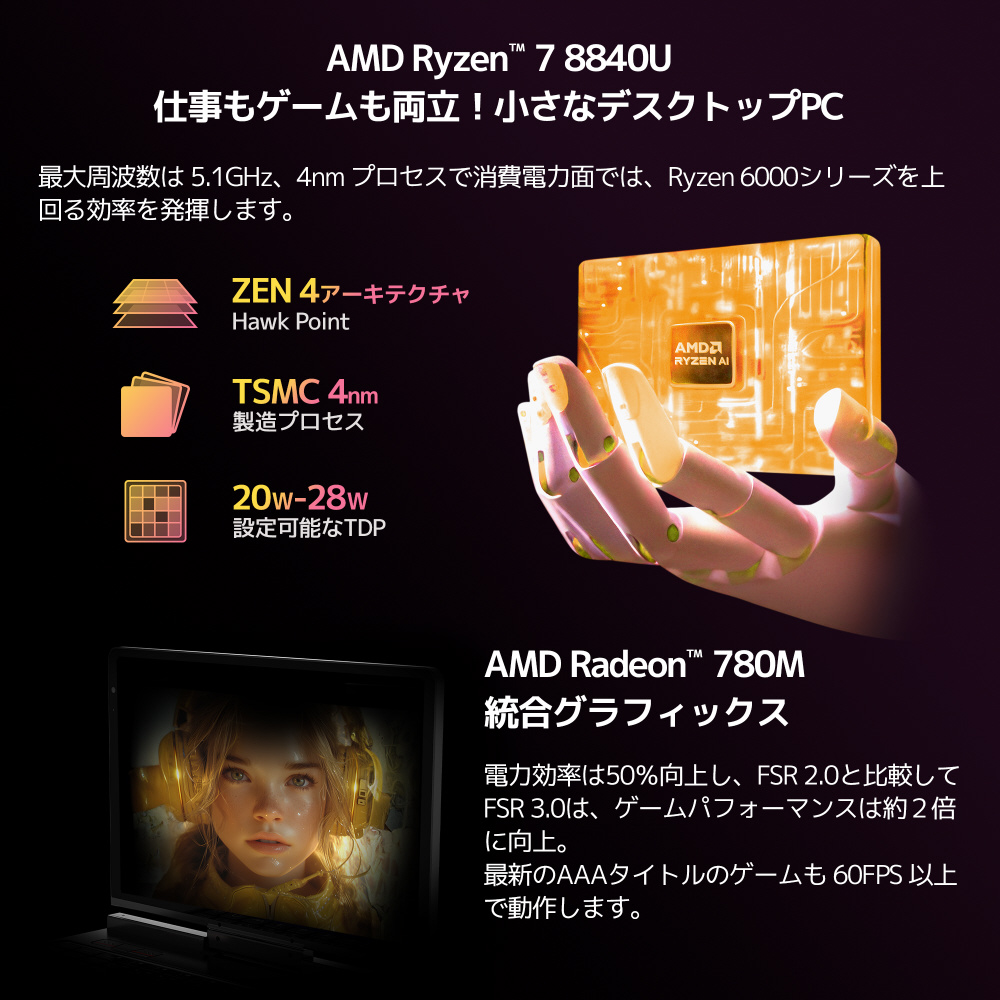 8.8インチ液晶を搭載したゲーミングにも対応するポケットサイズのPC