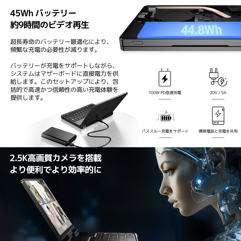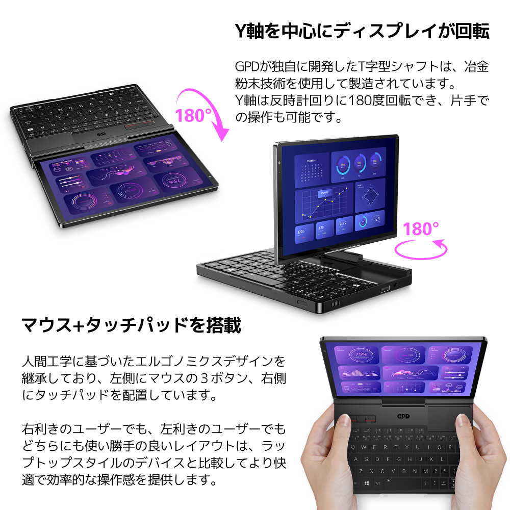 GPDPK4-881610R ゲーミングノートパソコン 8.8型 GPD Pocket4 ブラック [Windows11 Home /AMD Ryzen 7 /メモリ:16GB /SSD:1TB /英語版キーボード /2025年2月モデル]