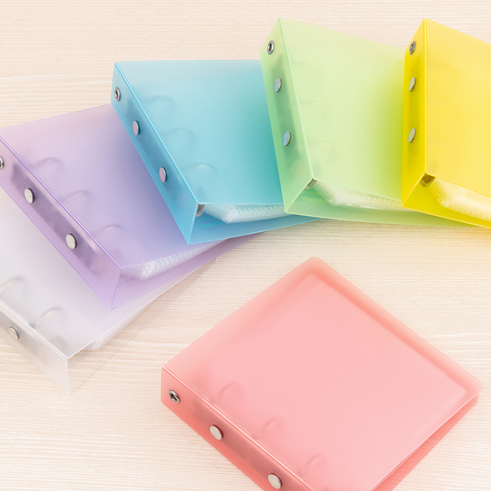 お気に入りのトレカを持ち運ぶのに便利なポケットサイズのバインダー式トレカファイルです。内容物が透けて自分好みにカスタマイズができるクリア表紙を採用しました。キーホルダーがつけられるストラップホール付き。