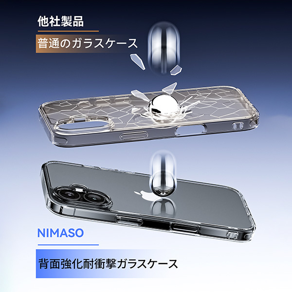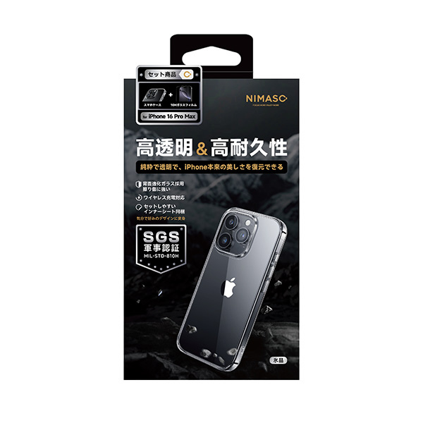 | 商品名 | iPhone 16 Pro Max TPUフレーム+背面強化ガラスケース ガラスフィルムセット NIMASO(ニマソ) クリア NI-D1-16DS1001 |