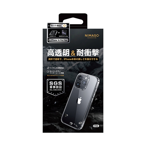 iPhone 16 Pro Max TPUフレーム+PCケース ガラスフィルムセット NIMASO(ニマソ) クリア NI-D1-16DS0101