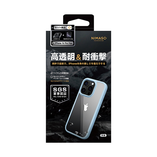 iPhone 16 Pro Max TPUフレーム+PCケース ガラスフィルムセット NIMASO(ニマソ) ブルー NI-D1-16DS0109