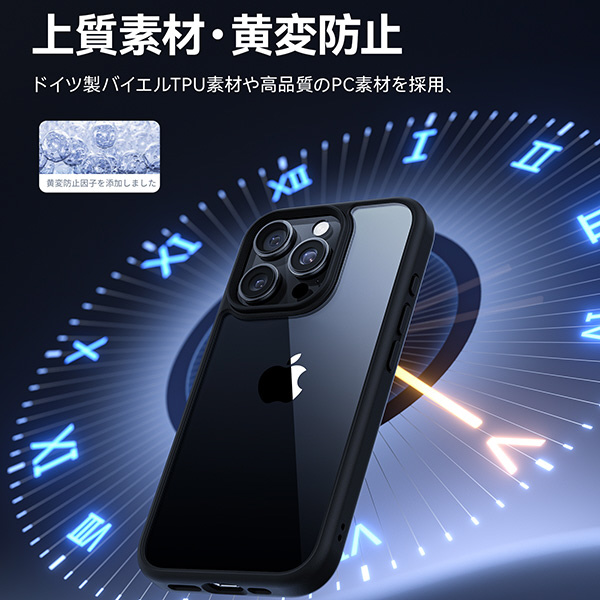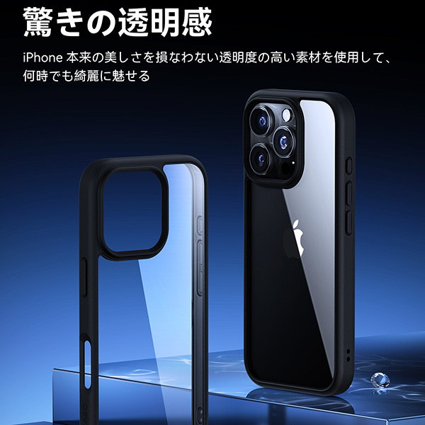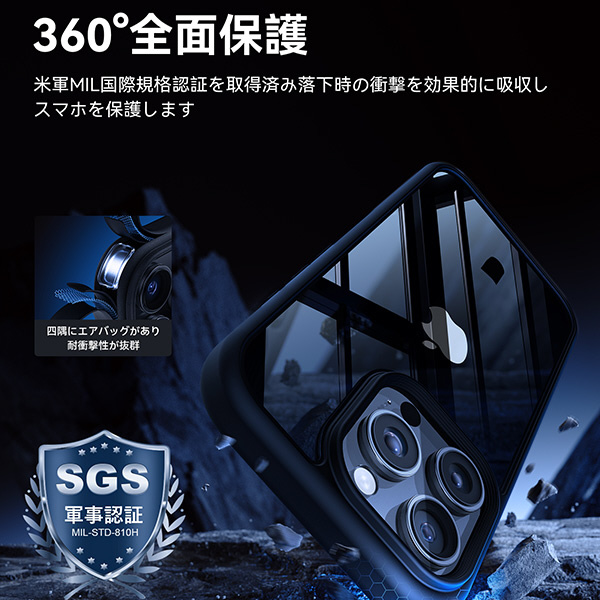 MIL-STD-810H認証取得。ケースと高透明ガラスフィルムがセットになっている商品です。背面カメラ部分を保護するため1mm高いエッジ構造となっています。ワイヤレス充電対応。