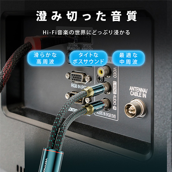 グリーンシェルと編みジャケットで従来のプラスチックジャケットに勝るプレミアムな外観を表現。澄み切った音質でHi-Fi音楽の世界にどっぷり浸かる。シルバーコーティング無酸素銅コンダクターがシグナル伝送喪失やサウンドの劣化を最小限にする。それぞれのコンダクターが保護されている2重シールドで、EMIやRFI干渉を防ぐ。