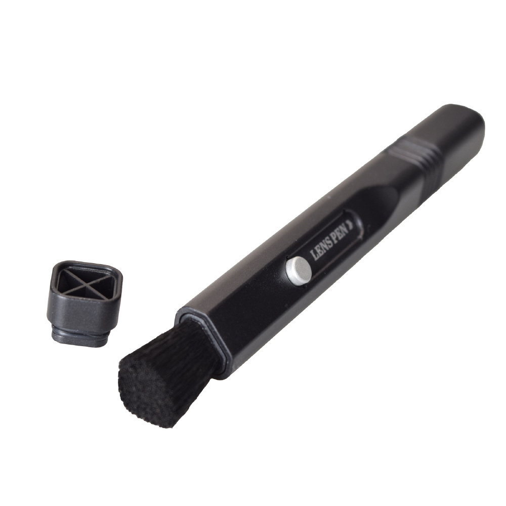 いつでもどこでもレンズをクリーニング。丸形と角形のクリーニングペン+ブラシ。