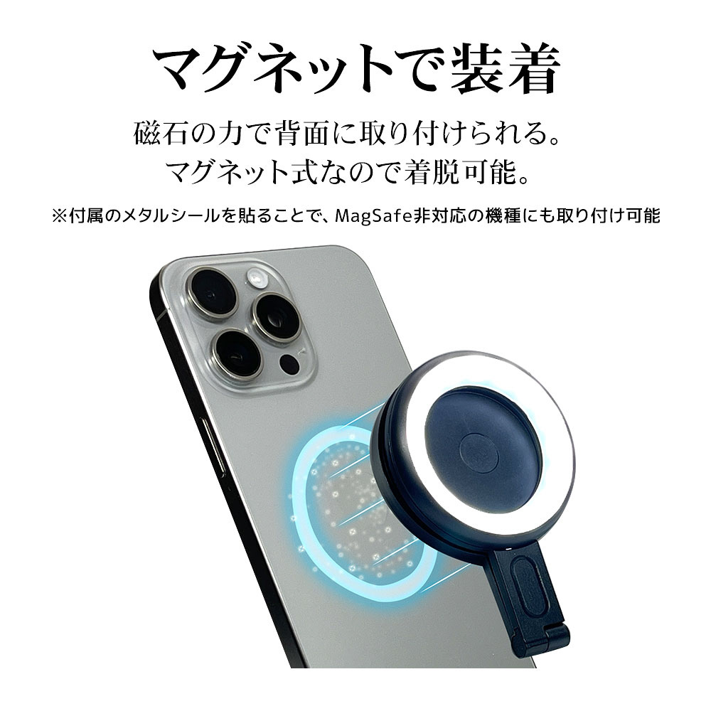 本製品はMagSafe対応iPhoneの背面に磁石の力で取り付けることができるマグネット式LED照明です。