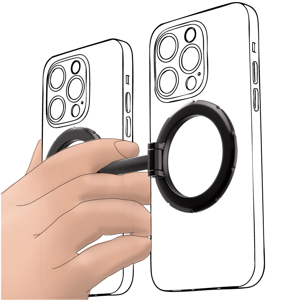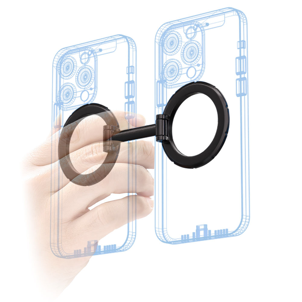 スマホ用デュアルマグネットリング『マグネブル』 [スタンド機能/スマホ2台取付対応] ブラック MS-MAGBLE-GM