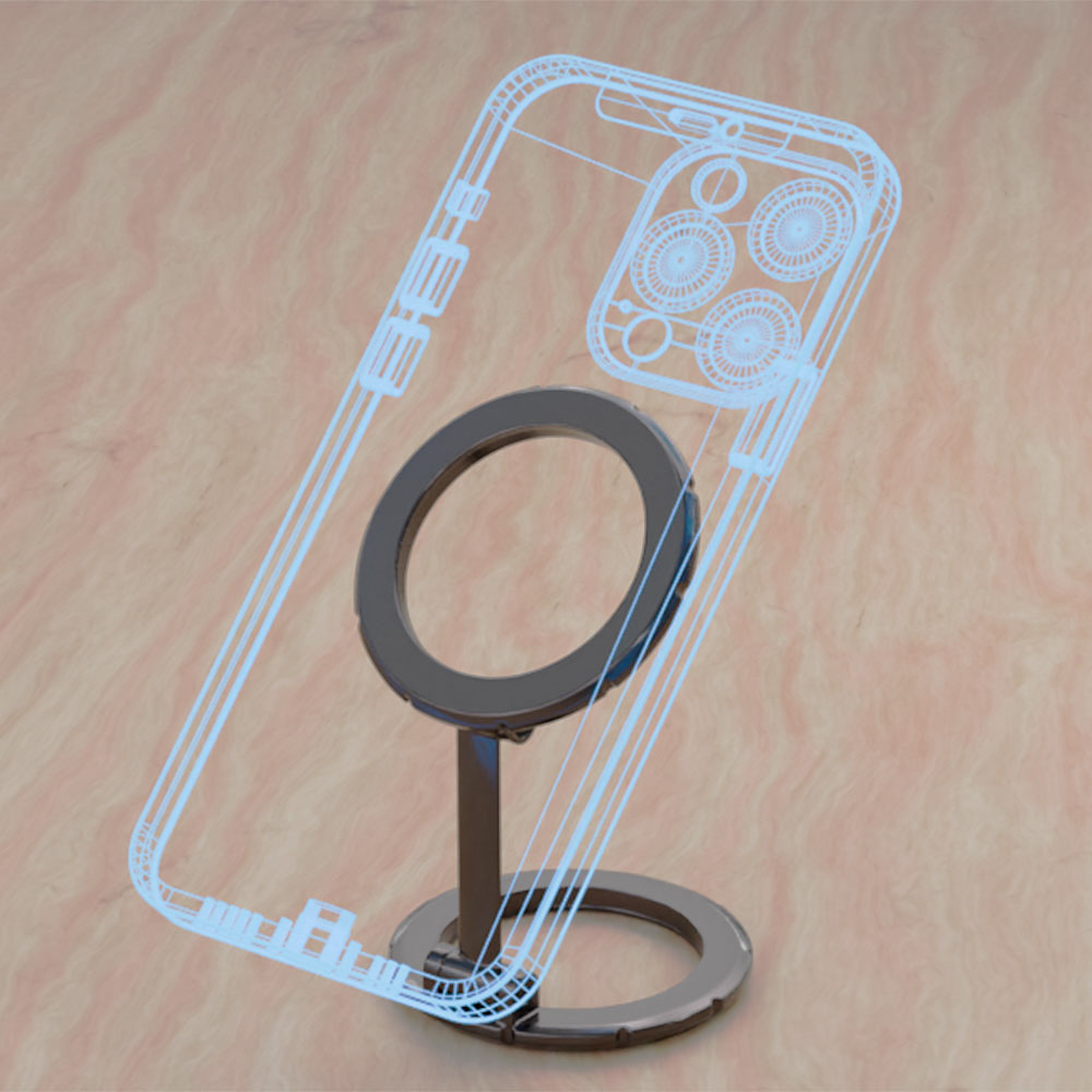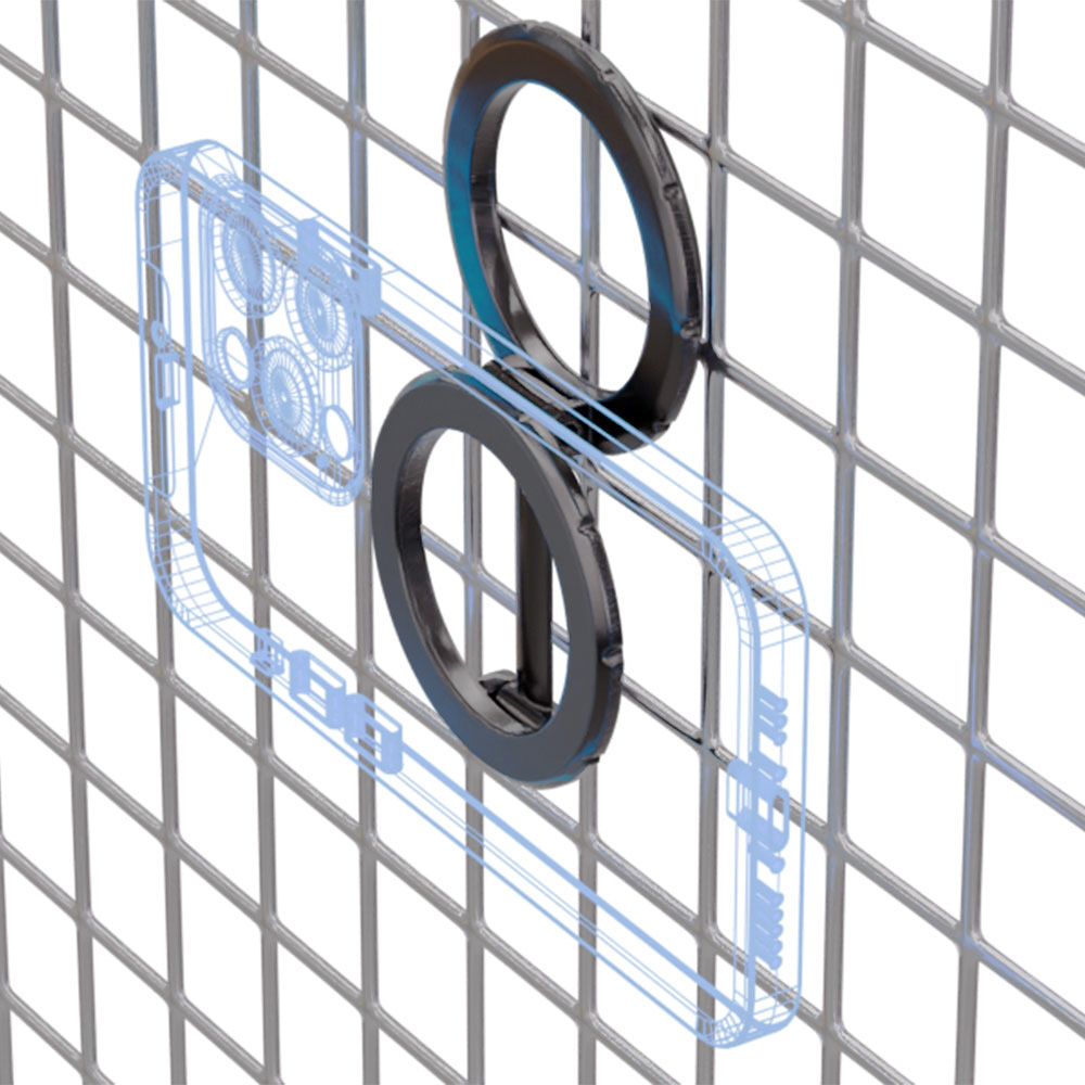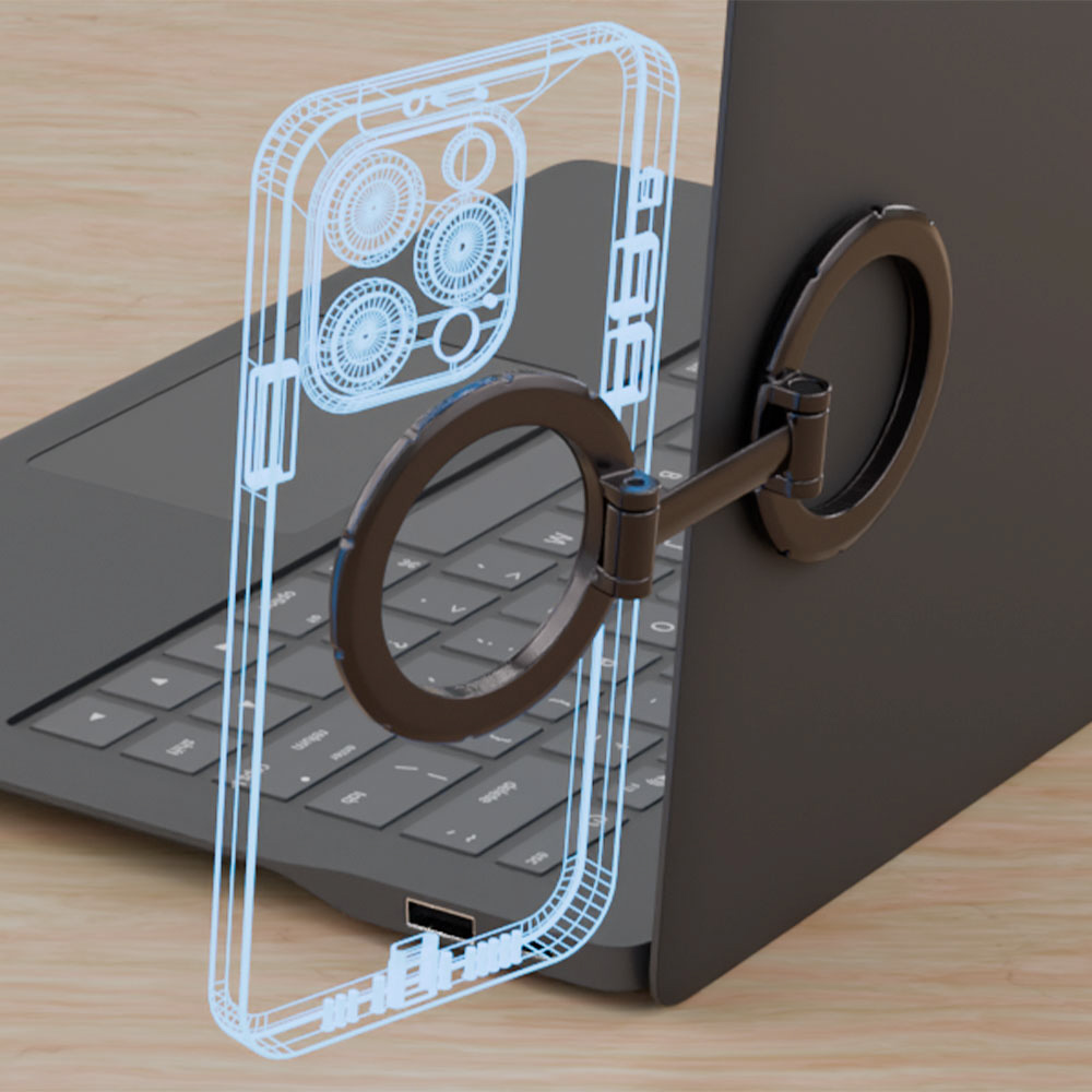 両方のリングにスマホを取り付けると、2台が同じ方向を向く形状になっています。