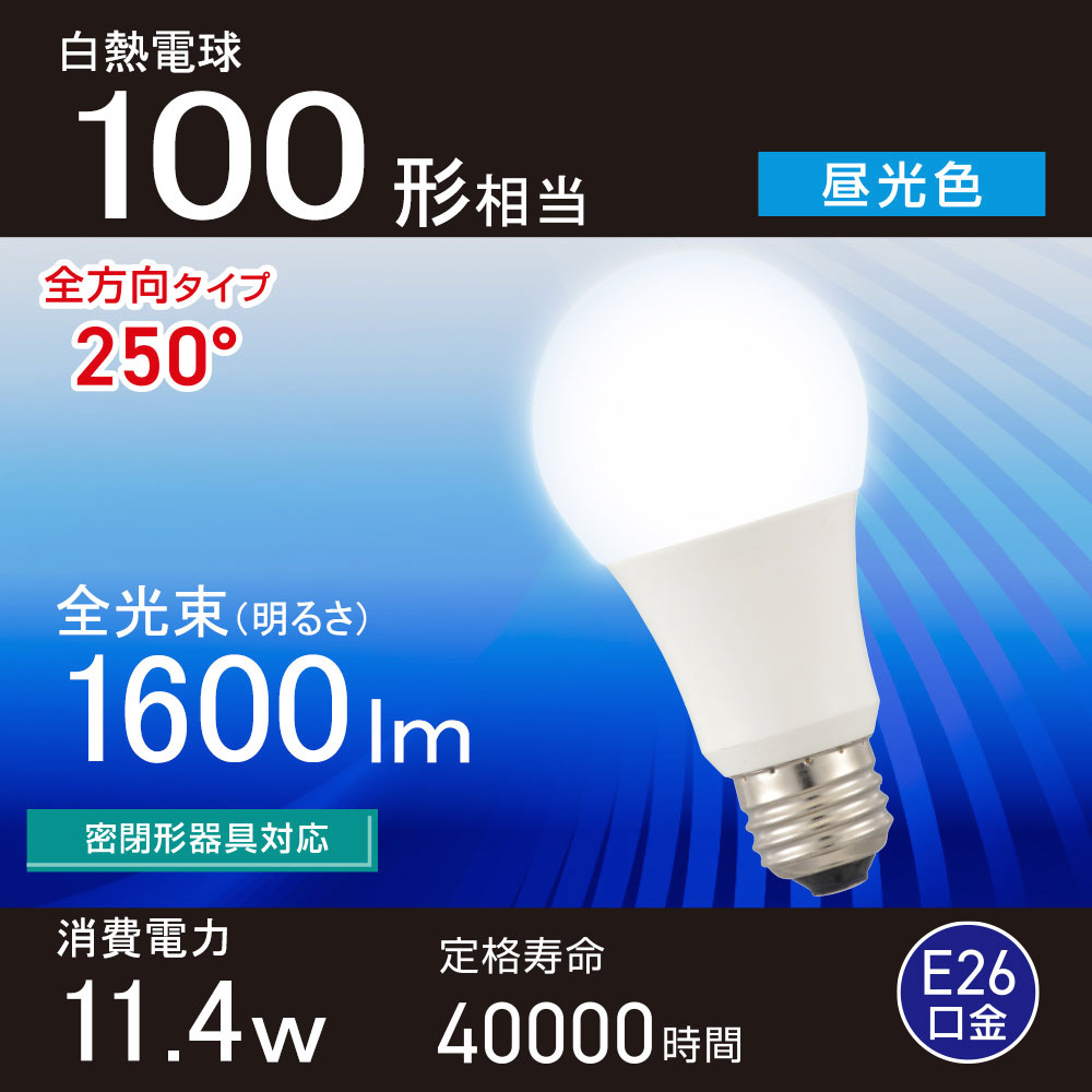 全光束1600ルーメン、白熱電球100形相当の明るさ