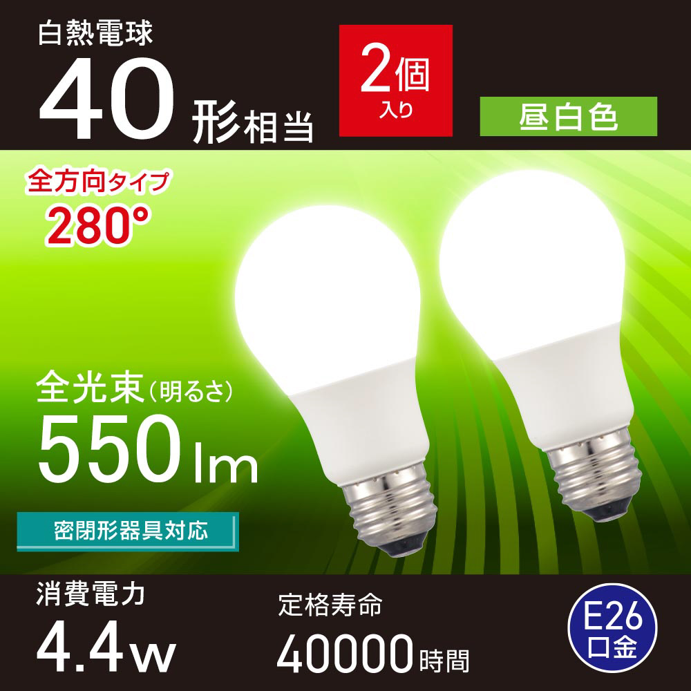 | 商品名 | LED電球 LDA4N-G AG59 2P [E26 /一般電球形 /40W相当 /昼白色 /2個 /全方向タイプ] |