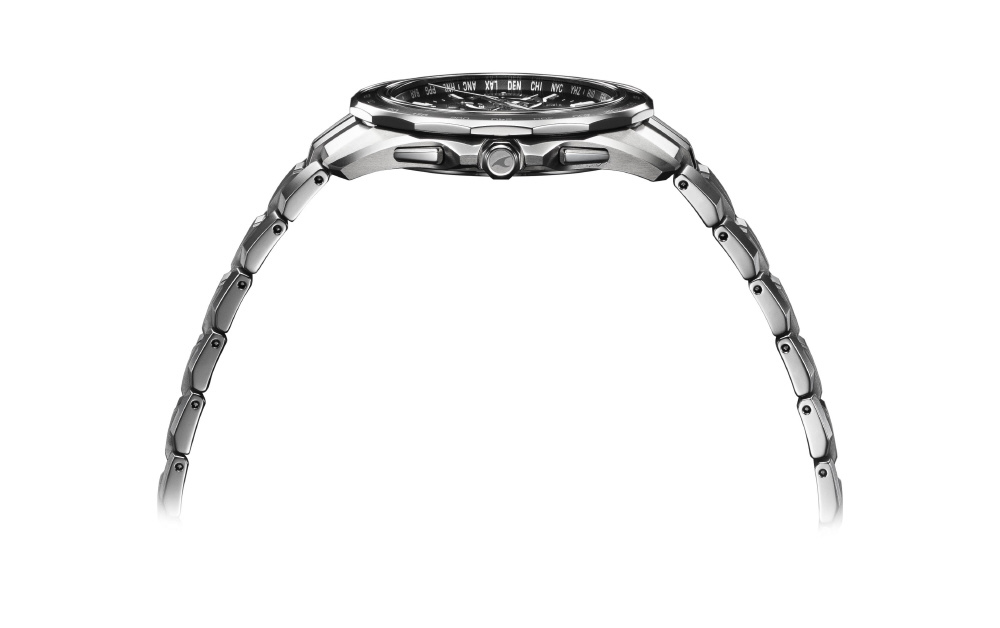 時計本体の標準電波受信機能による時刻修正に加え、スマートフォンリンクによる時刻修正機能などを搭載。