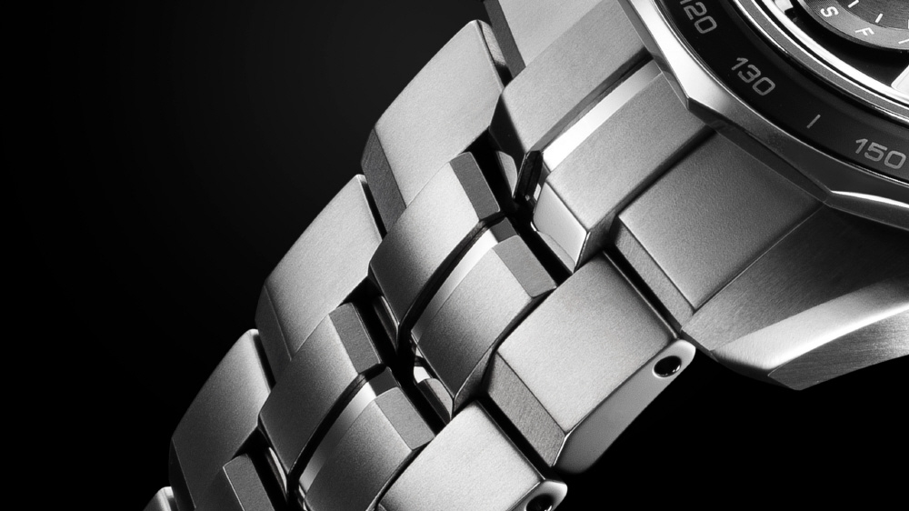 黒色で統一したベゼルとダイアルが、針とインデックスを引き立て視認性を確保します。