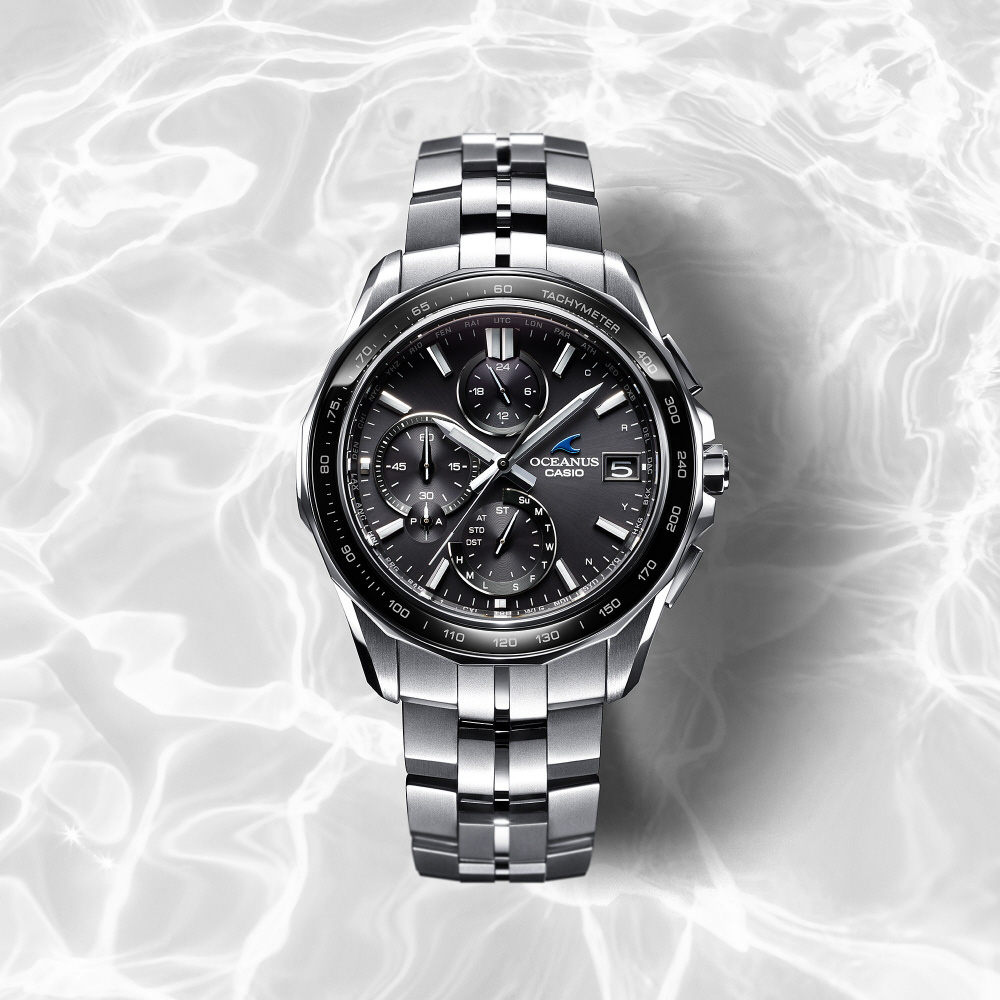 さらにタキメーター表示のベゼルは、傷に強く透明感の高いサファイアガラスを採用することで、OCEANUS Mantaらしい上質さを主張します。
