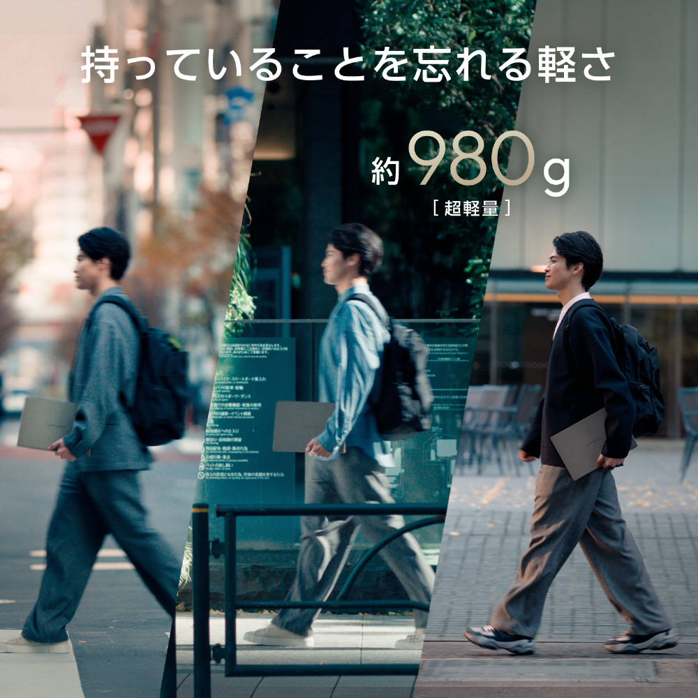 圧倒的な軽さと、一日中の持ち運びにも耐える長時間駆動を実現。場所や時間に縛られることなく、どこにいても高いパフォーマンスとあなたらしい創造性を維持できる抜群のモビリティ性能を備えています。
