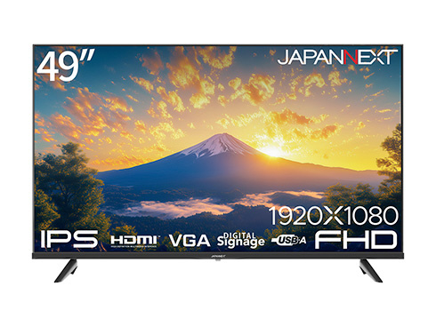49インチのIPSパネルを搭載した、フルHD(1920x1080)解像度の大型液晶ディスプレイです。大画面液晶は大きな会議室での使用はもちろん、サイネージ用途や、映画などの鑑賞等様々な用途にお使いいただけます。
