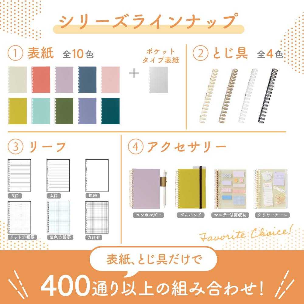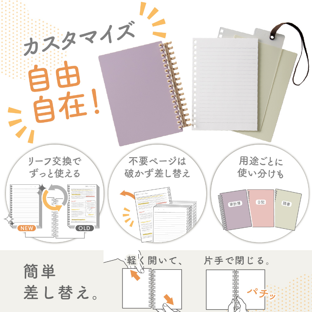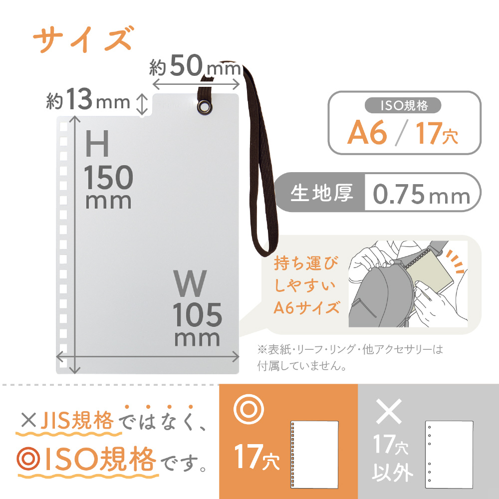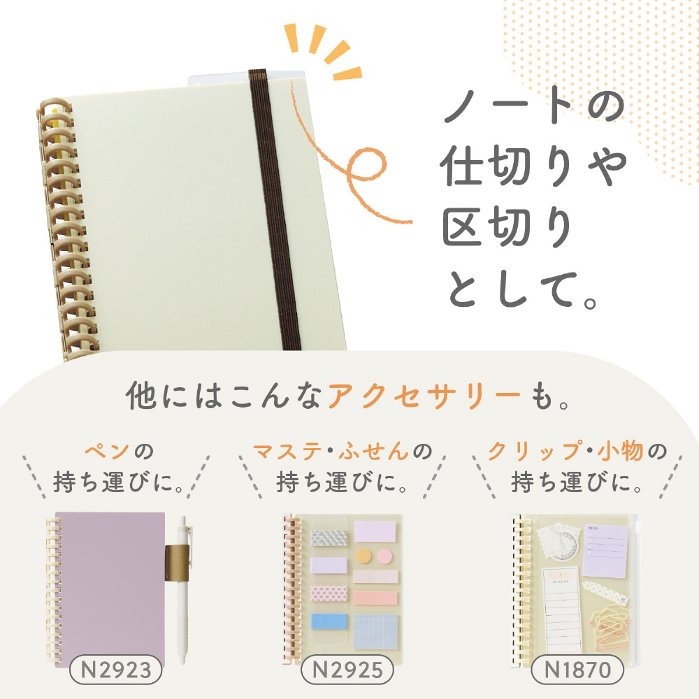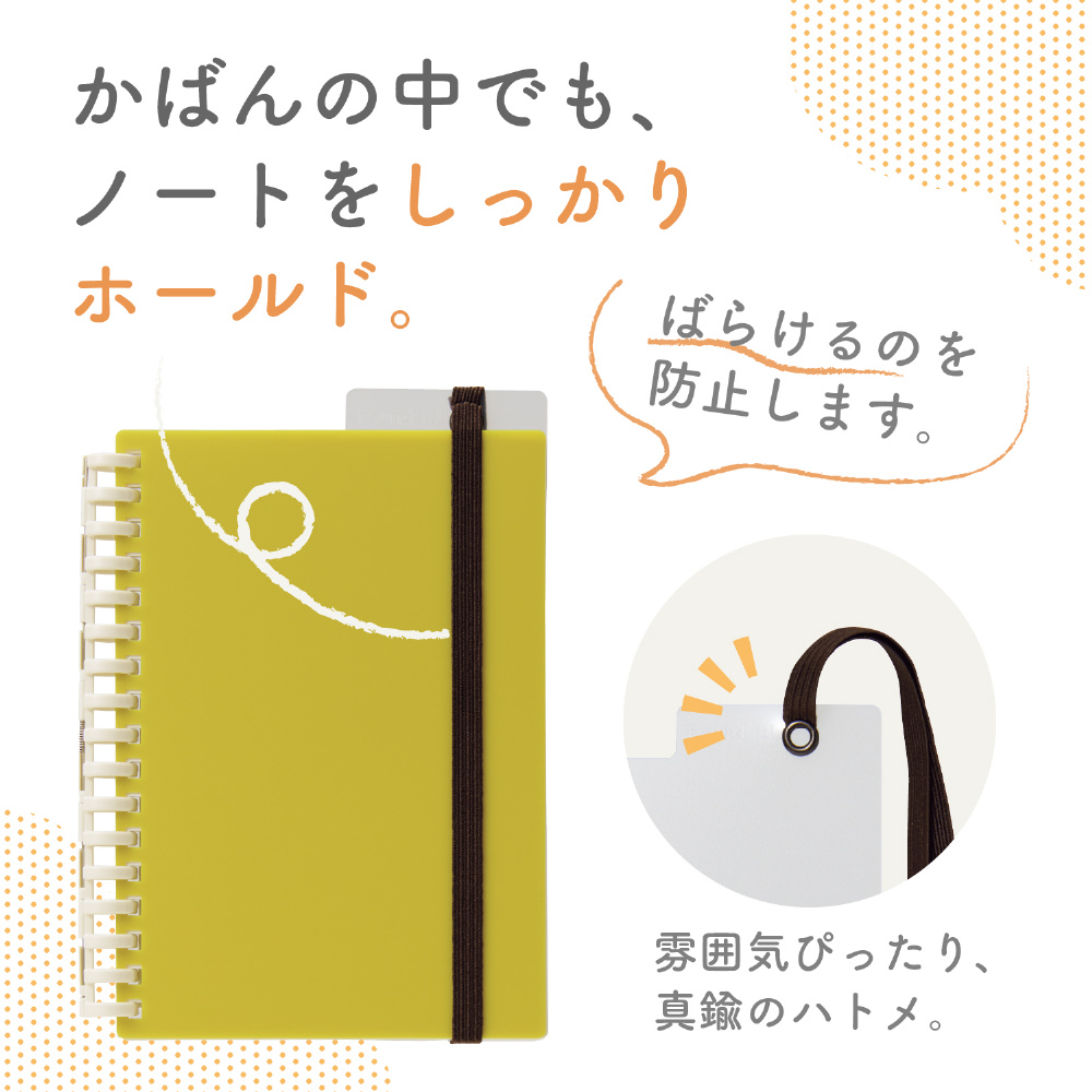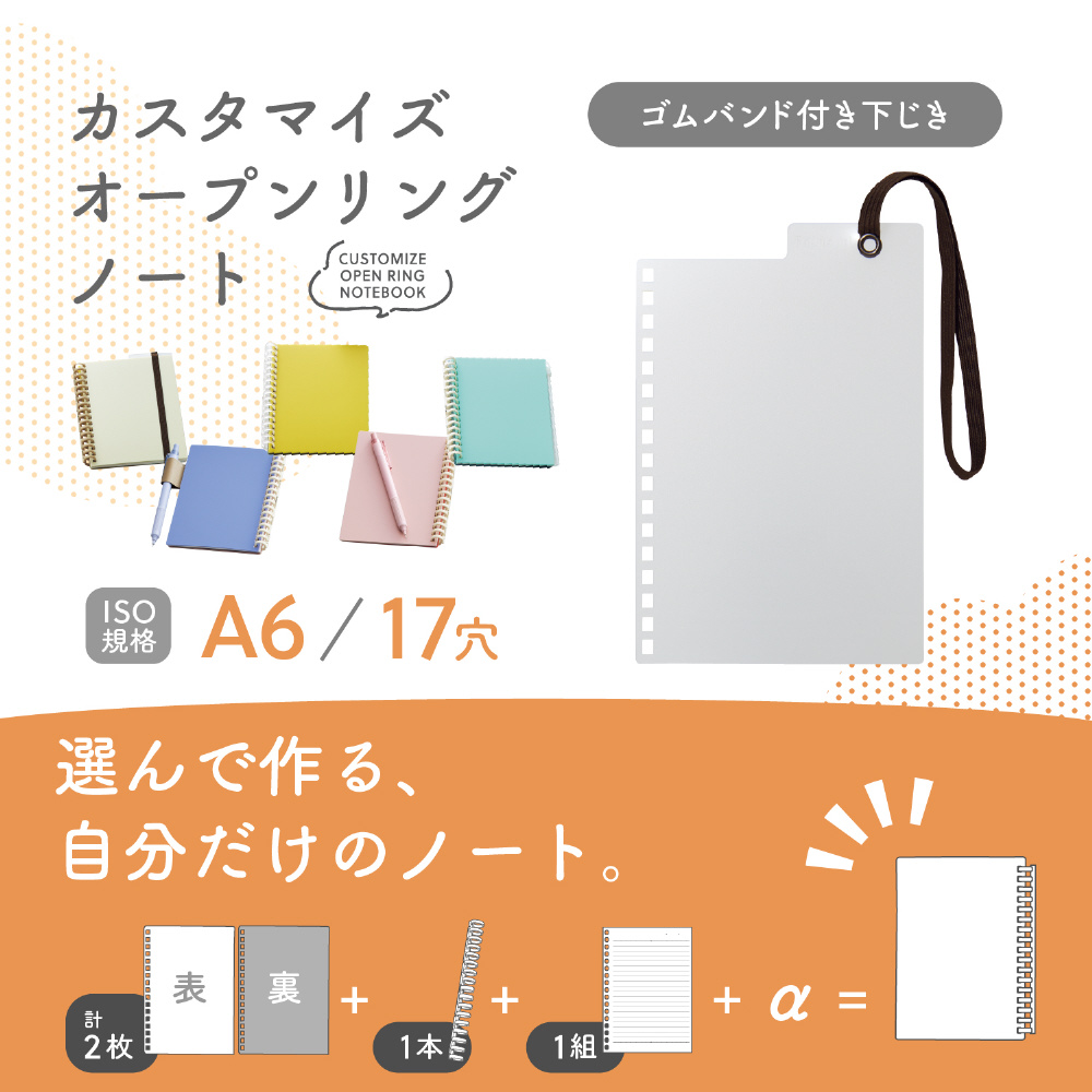 オープンリング・ツイストノート専用のゴムバンド付き下じきです。リーフやとじ具と組み合わせて自分だけのオリジナルノートが作れます。