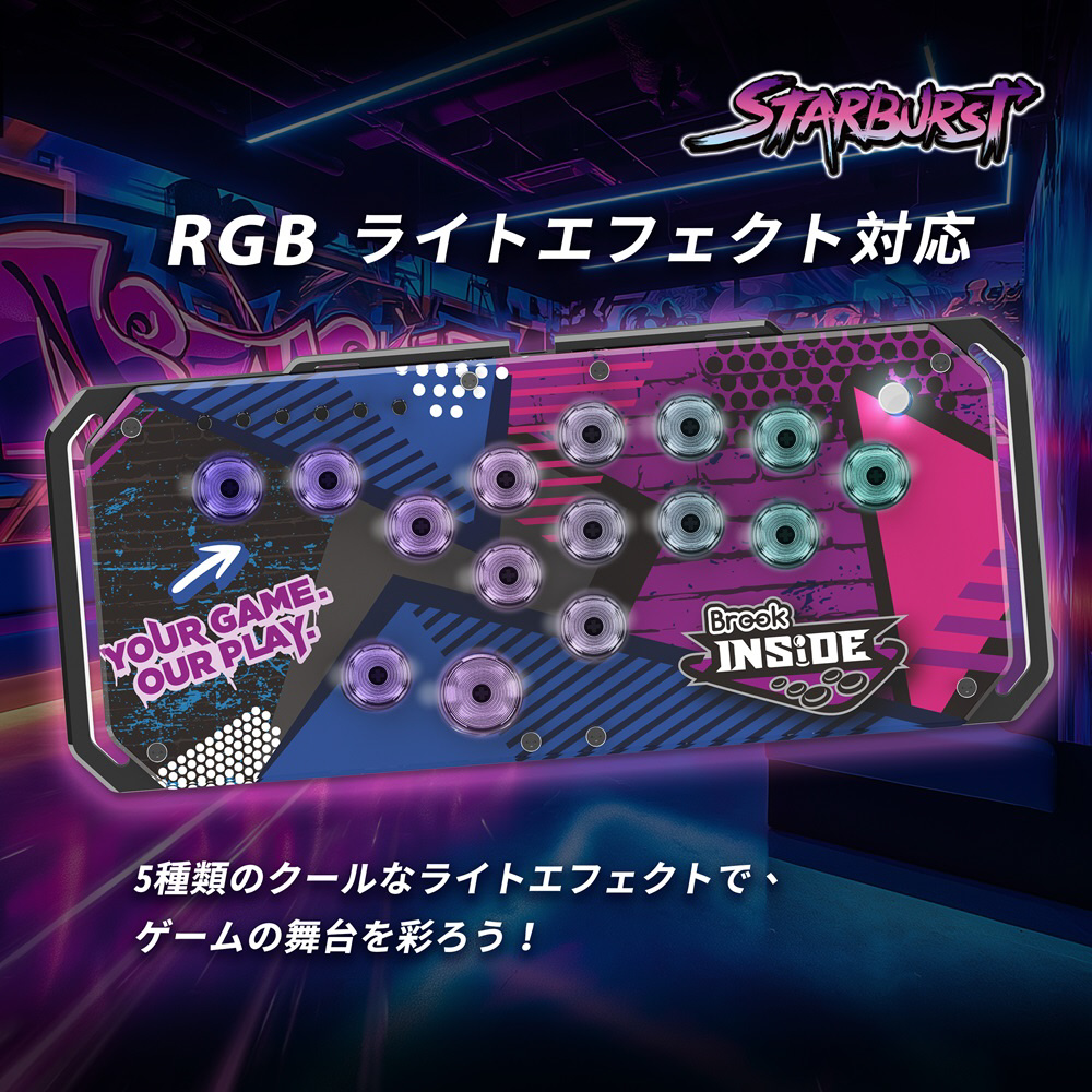 PS5、PS4、Xbox Series X/S、Switch、Windows PCに対応したこの全ボタン型コントローラーは、格闘ゲームに最適な精度とスピードを提供します。