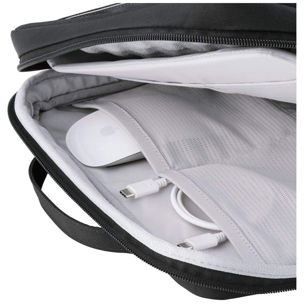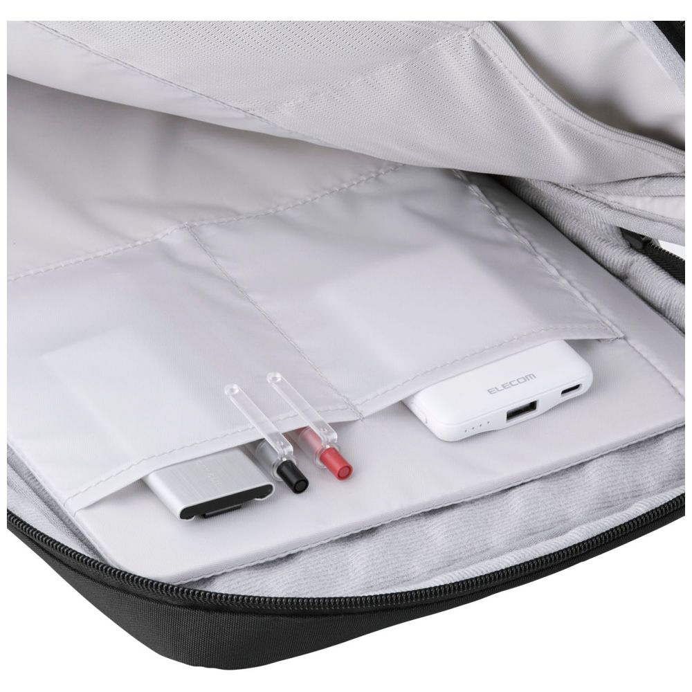 本体内装には、マウスやケーブルなどの周辺機器を整理して収納できるストレッチメッシュ素材のオープンポケットを2つ備えています。