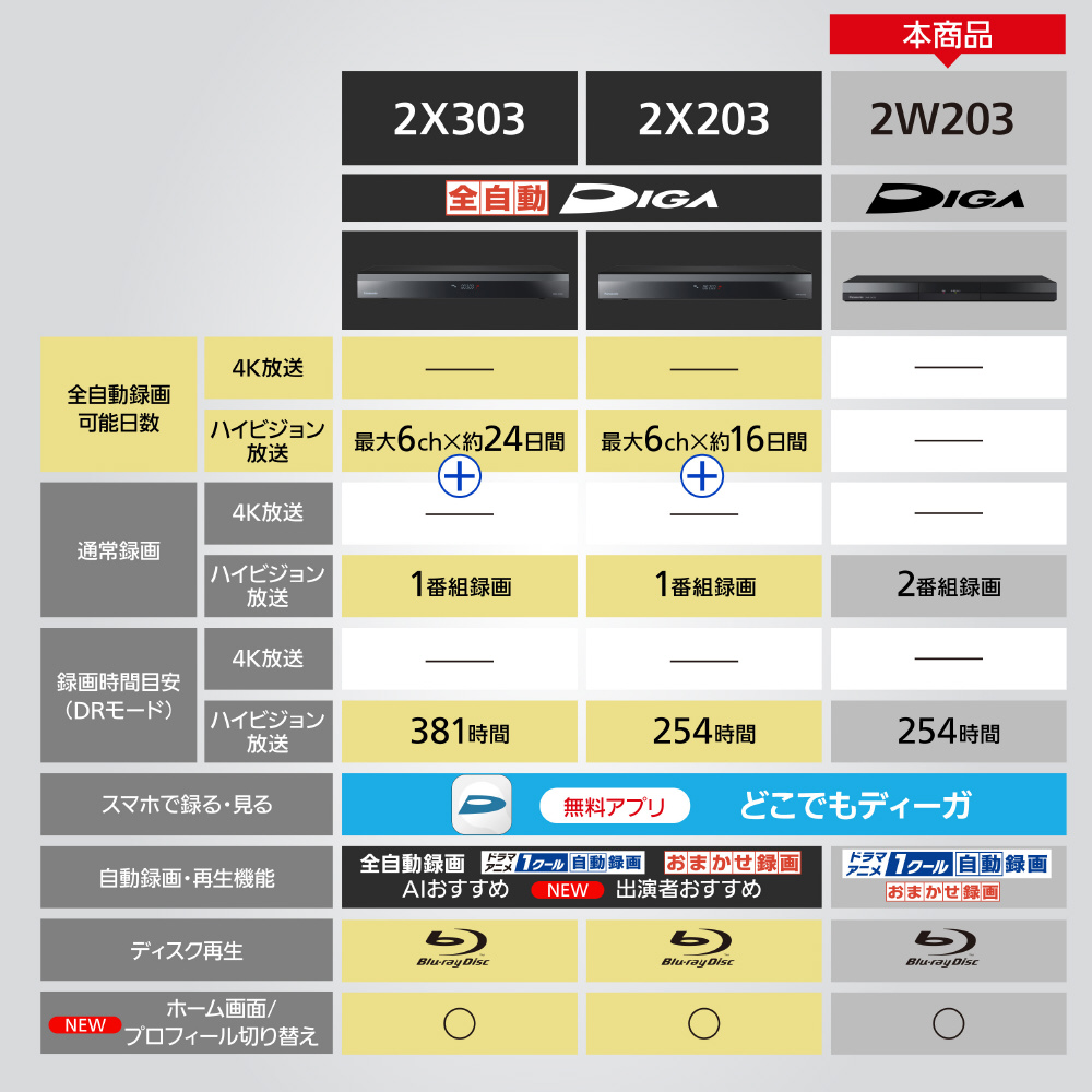 ブルーレイレコーダー DIGA(ディーガ) DMR-2W203 [2TB /2番組同時録画]
