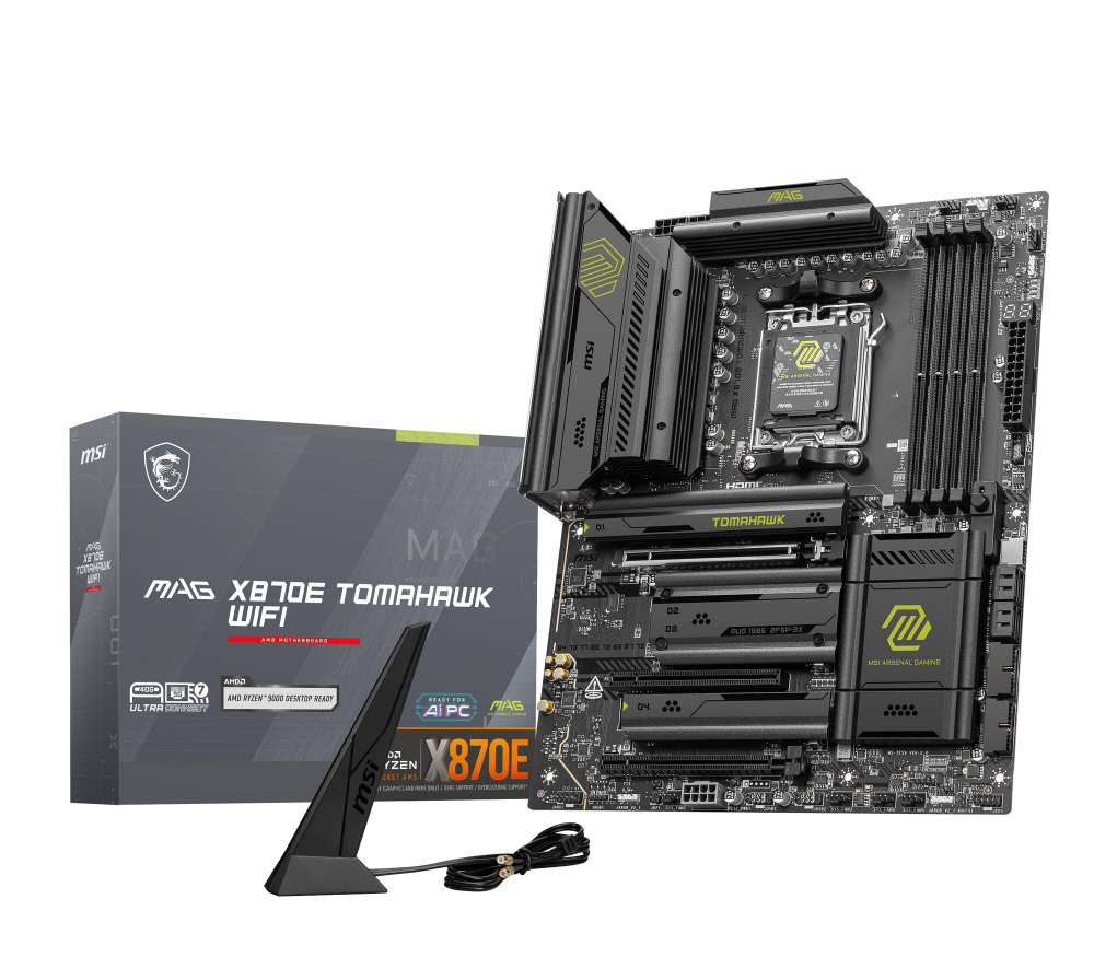 AMD X870Eチップセット搭載。ミリタリー調デザインを採用しゲーミング向けに豊富な機能を備えたATXマザーボード
