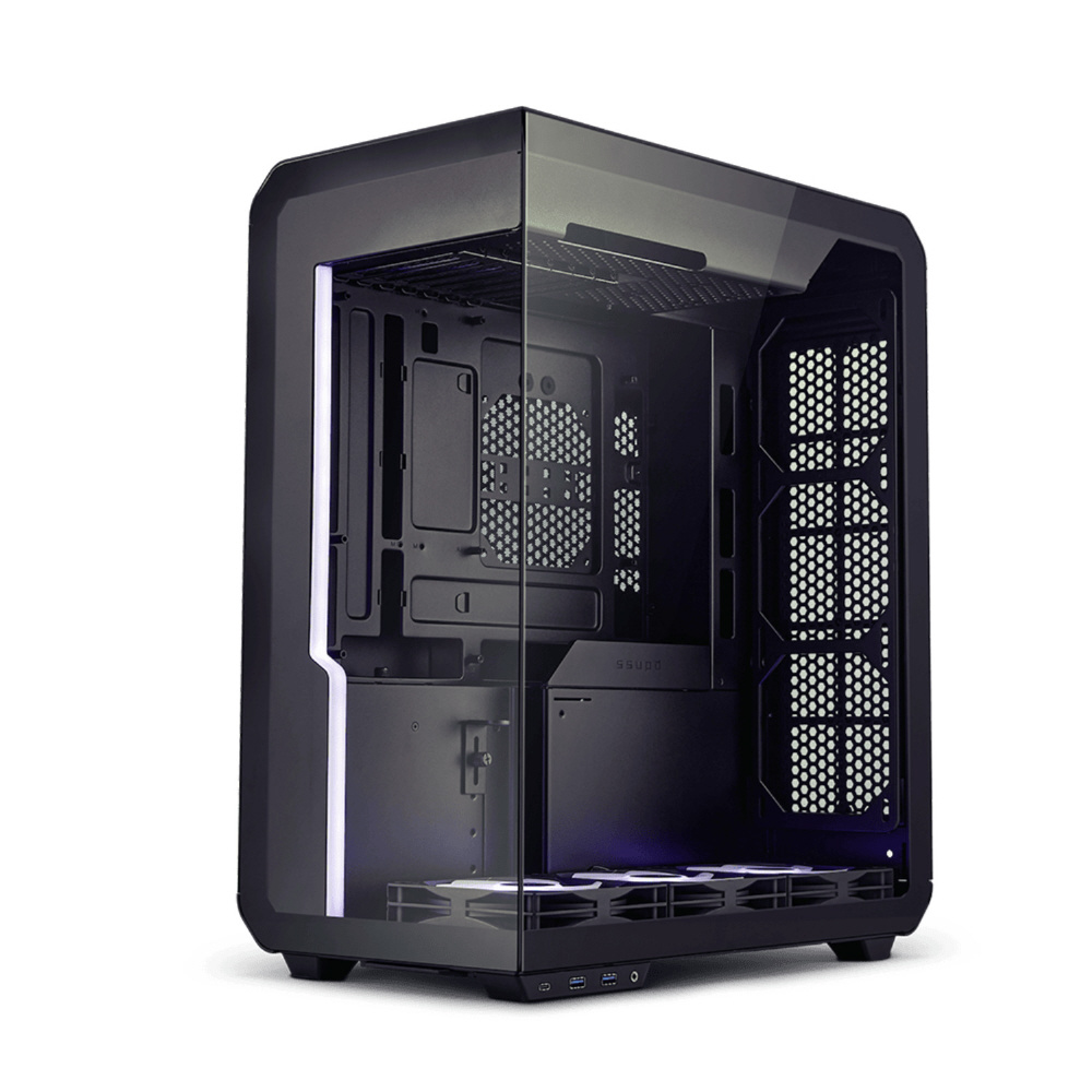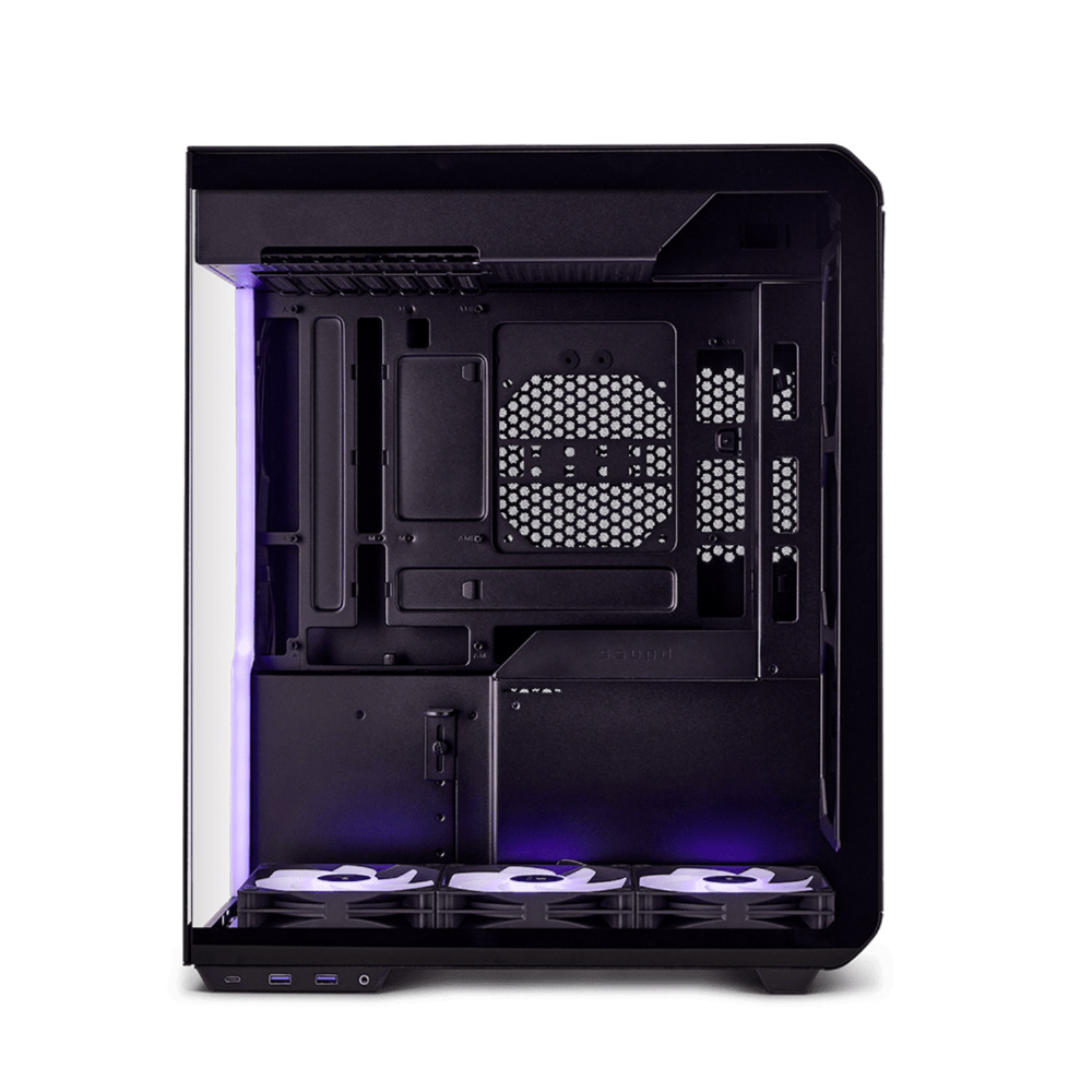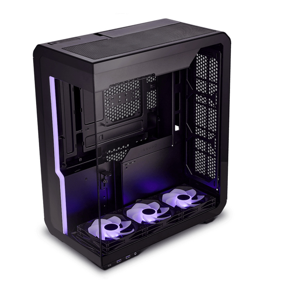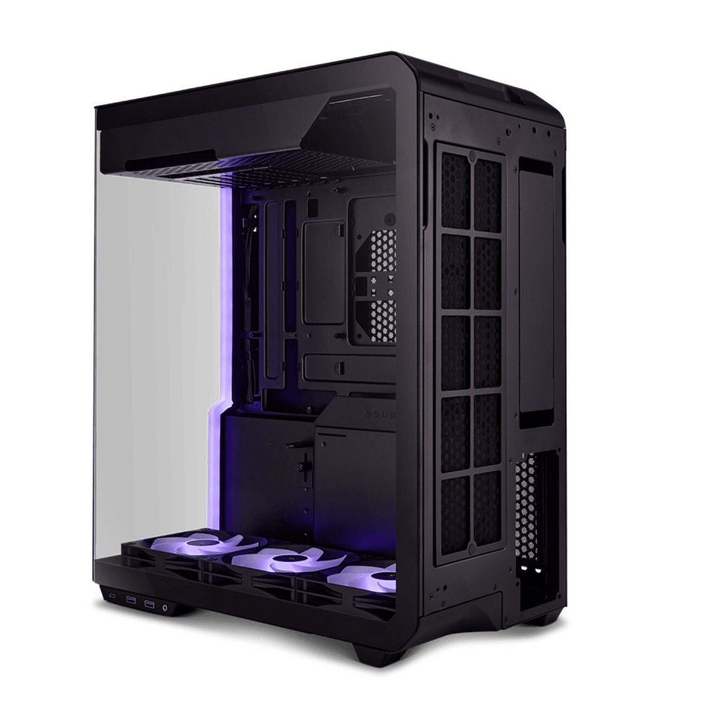 サイドとフロントのガラスパネルをピラーレスに配置し、さらにバックコネクトM/Bをサポートしたことによって、内部コンポーネントをすっきりと展示できることが最大の特徴です。