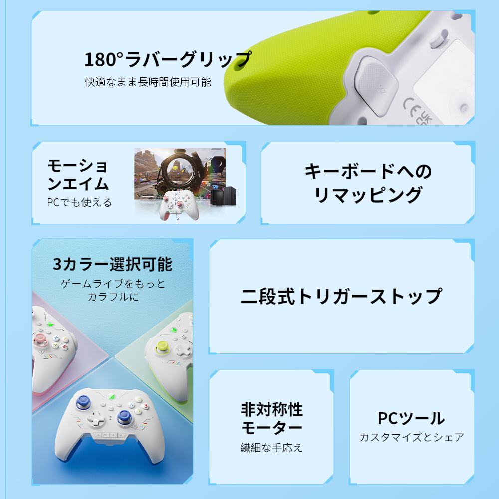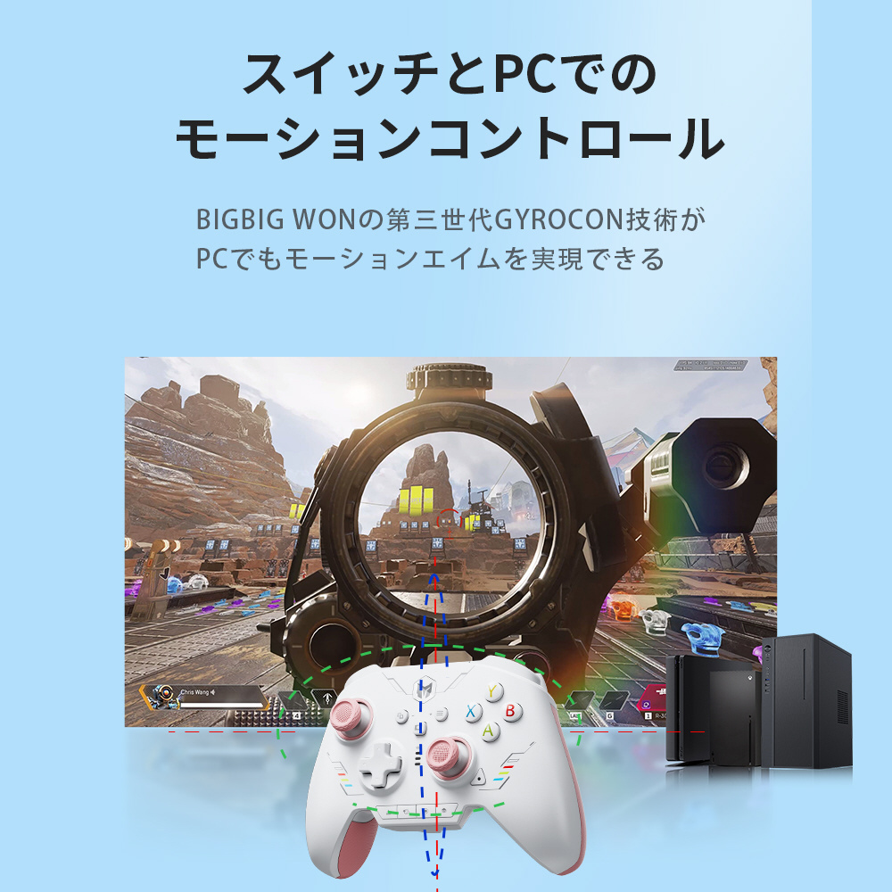 ポーリングレート1000Hz(有線接続時)のマルチプラットフォーム対応 ワイヤレス&有線ゲーミングコントローラー 任天堂Switch & Windows10/11対応のジャイロ搭載 ピンク