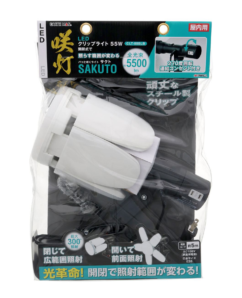 | 商品名 | LEDクリップライトSAKUTO 55W EARTH MAN ホワイト CLT-55SLB |