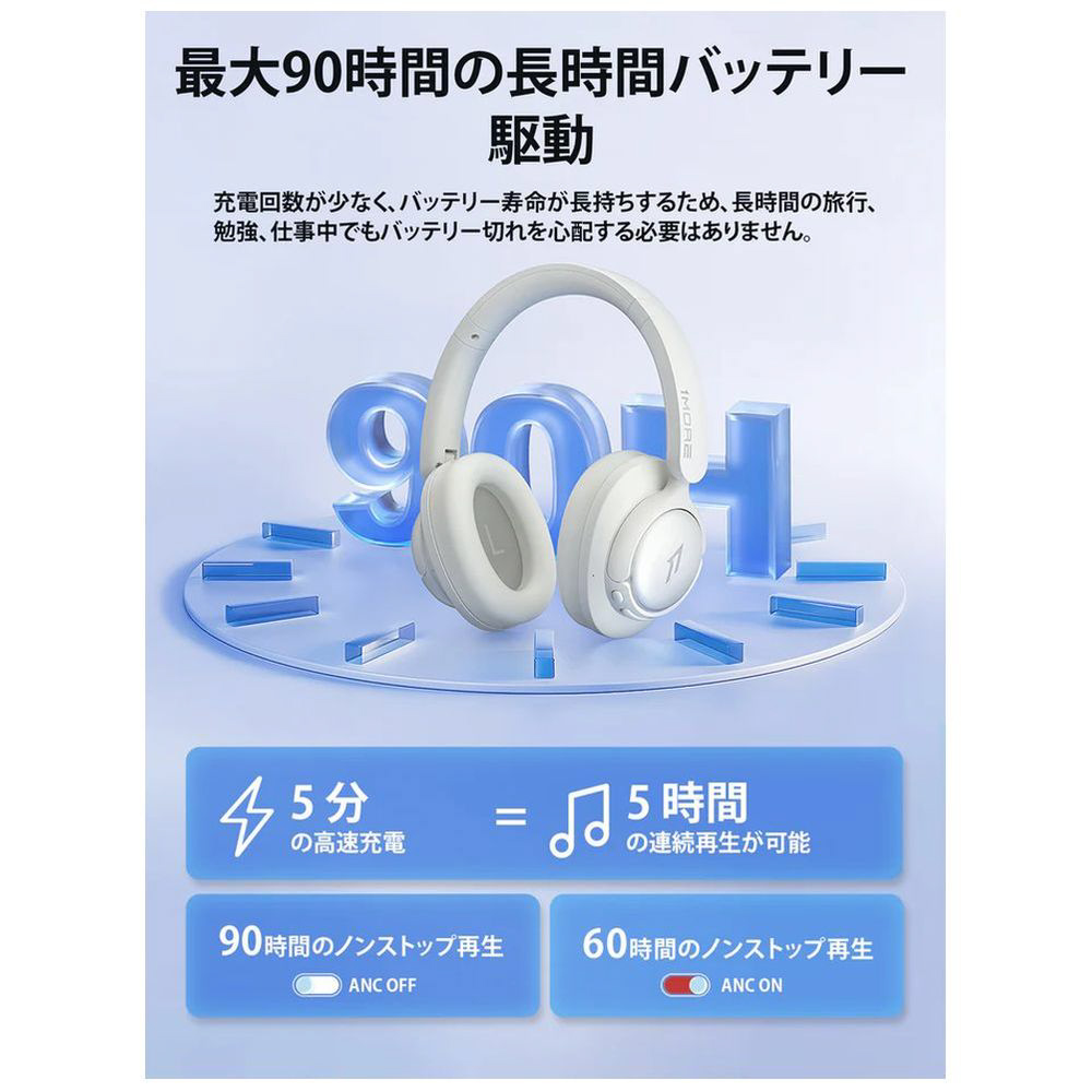 2つのハイレゾ認証業界最高基準の認証取得 最高の音質であらゆる曲を楽しむ 5分間のクイック充電で5時間の再生を楽しむ デュアルマイクAIノイズキャンセリング機能搭載、あなたの声を正確に識別