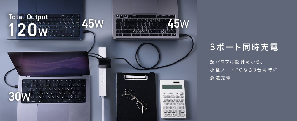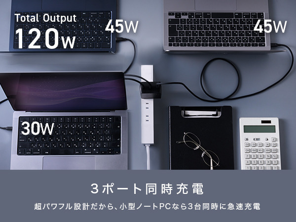 PC3台の充電にも対応!自宅やオフィスの強い味方