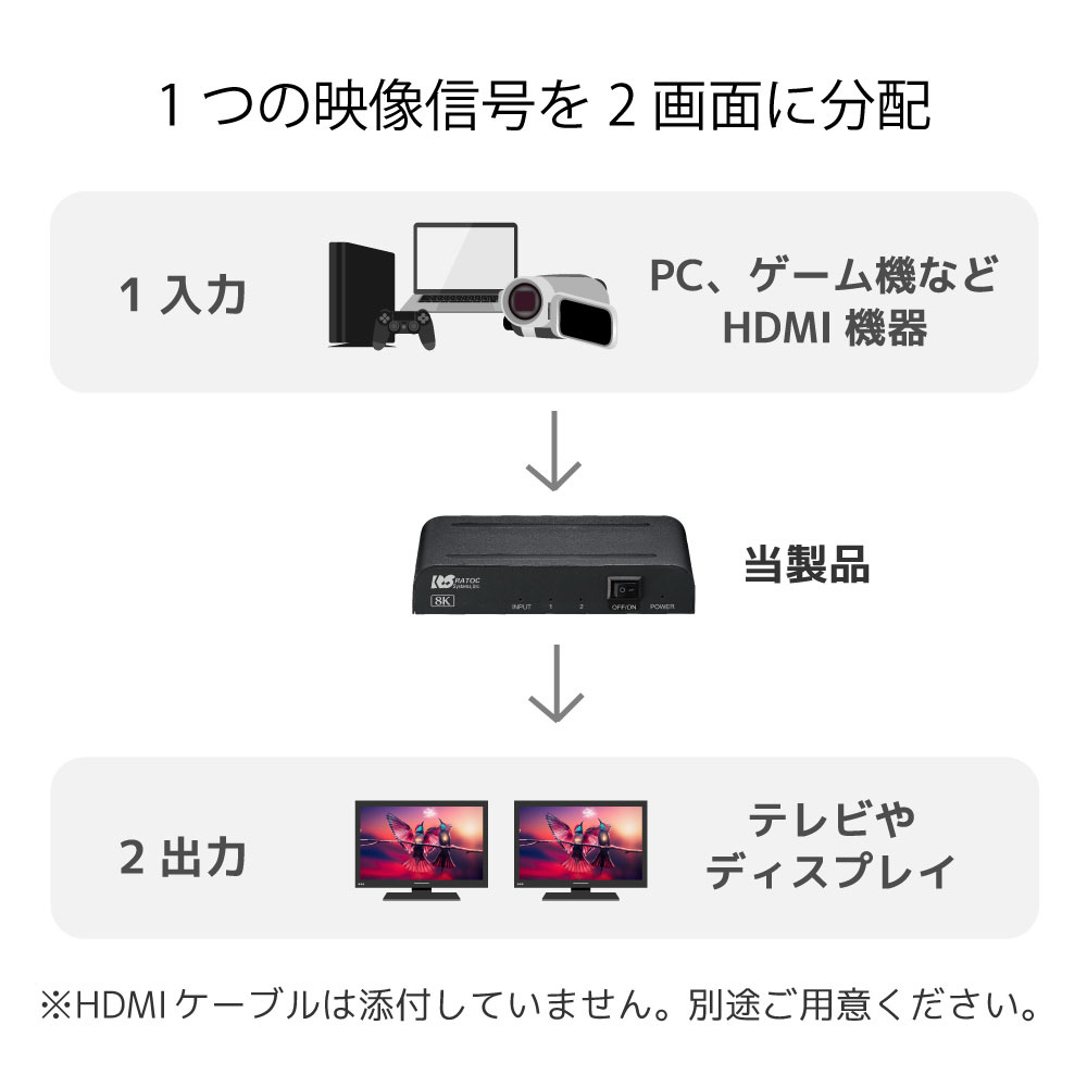商品名 8K対応 1入力2出力 HDMI分配器 RS-HDSP2-8K