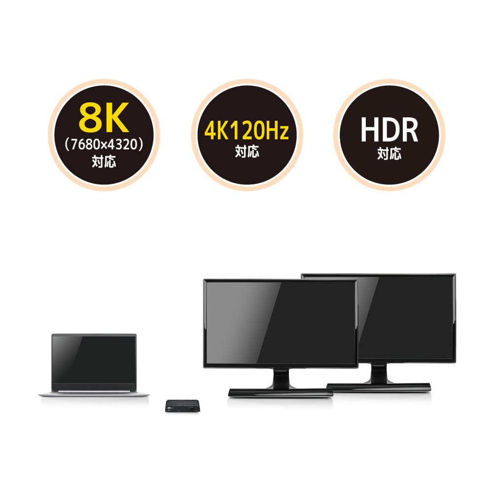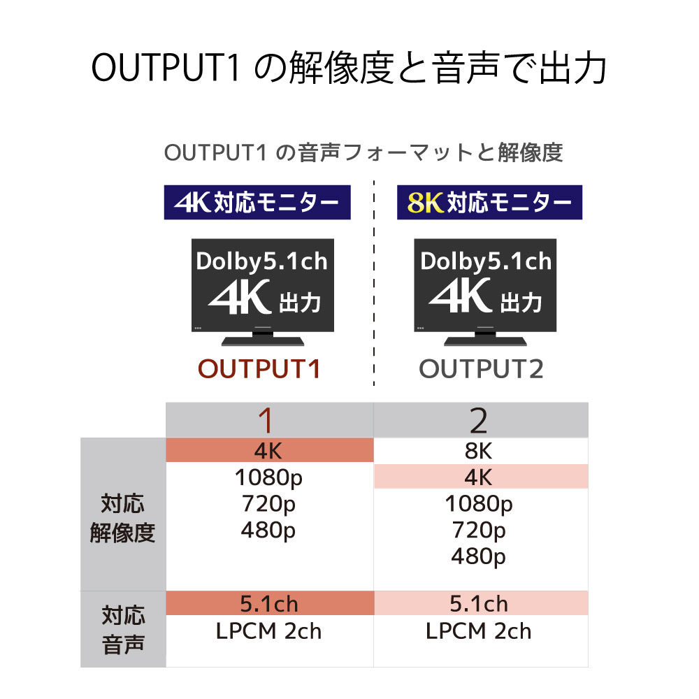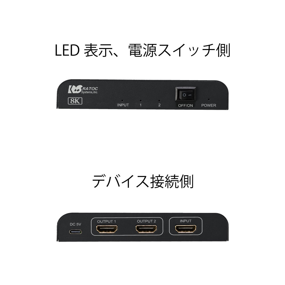 8K60Hzや4K120Hzの映像にも対応した1入力2出力 HDMI分配器