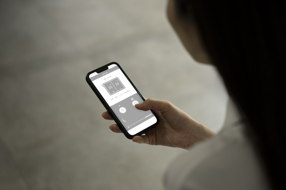 また、専用のスマホアプリを使用することで、スマートフォンで操作が可能。離れた部屋から操作し、睡眠環境を整えることができます。