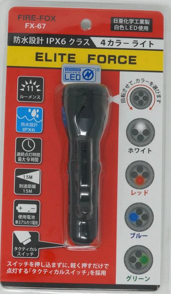 | 商品名 | FIRE FOX 4カラー小型LEDハンドライト FX-67 [LED /単3乾電池×1 /防水対応] |