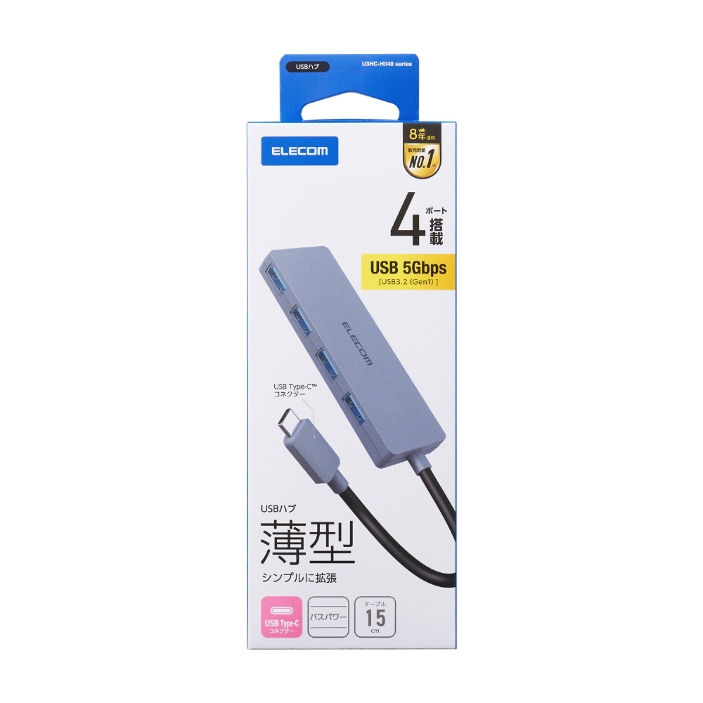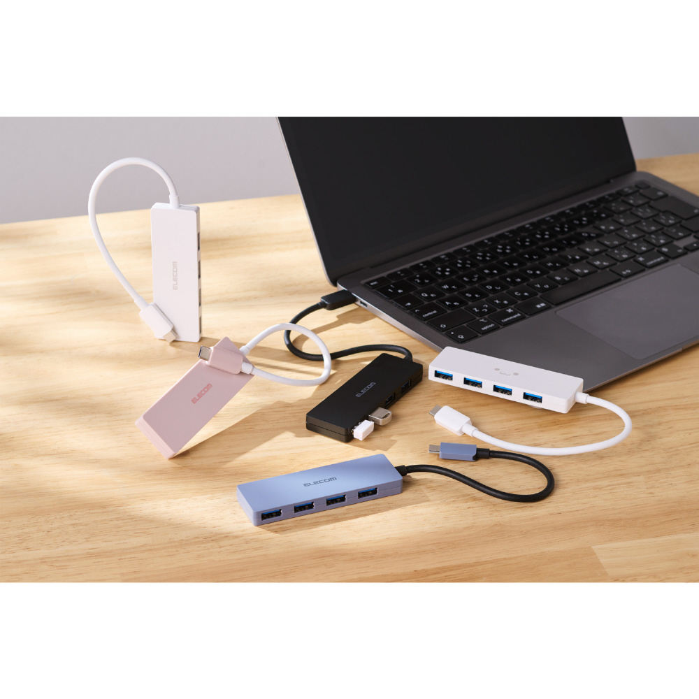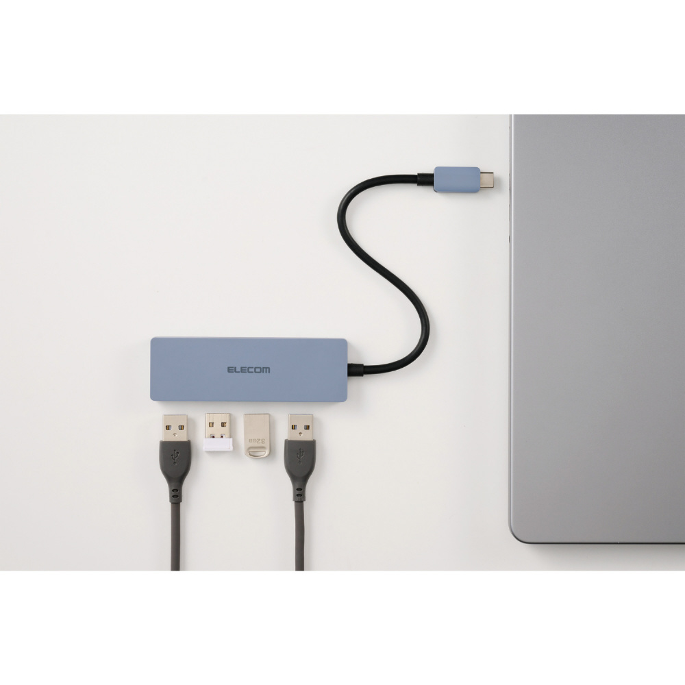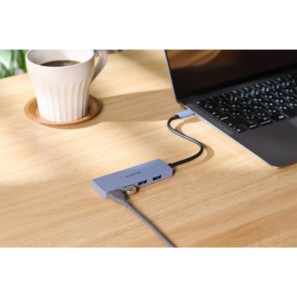 USB-Aポートを増やしてデスクまわりをすっきり。4つのUSB-Aポートを搭載した、USB Type-C(TM)接続のUSBハブです。USB 5Gbps(USB3.2(Gen1))で高速データ転送が可能です。機能を絞った薄型設計で、持ち運びにも便利です。