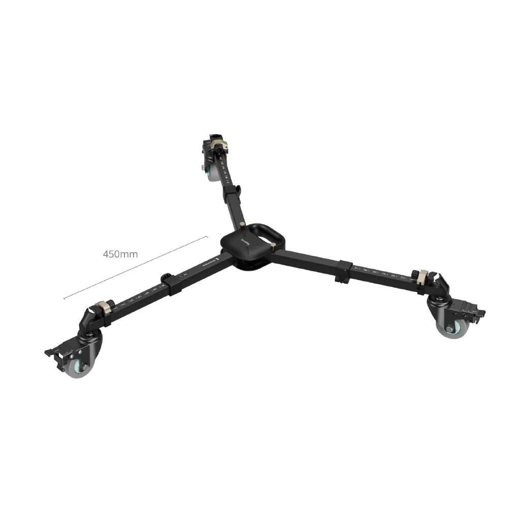 ヘビーデューティー三脚を楽に操作できるように設計されたユニバーサル ドリーです。最大20kgの耐荷重を備え、280〜450mm(11〜17.7インチ)の伸長範囲の三脚と互換性があります。新設計のクイックロック バックルにより、三脚を素早く安全にロックできます。