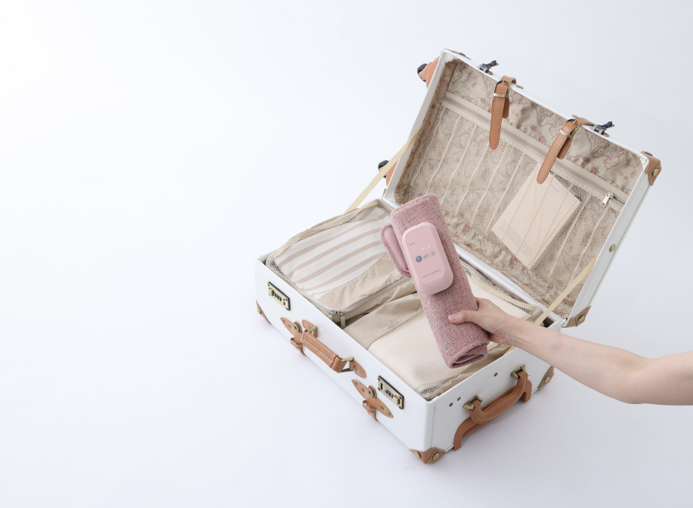 コードレス、コンパクト仕様なので、オフィスや旅行先にも持ち運べて便利です。