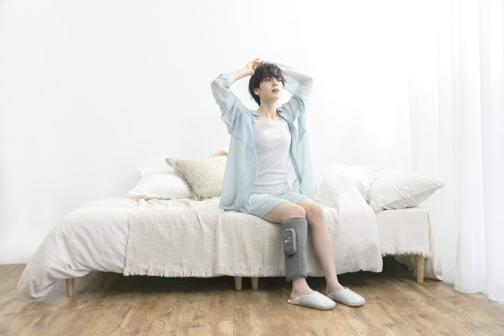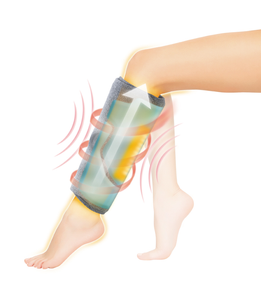 両手でもまれているような「手もみ」感覚を追求した、ふくらはぎ用エアマッサージャー。上下2層のエアバッグで力強くマッサージします。温熱ヒーター付で、ひんやりした脚もぽかぽかに。