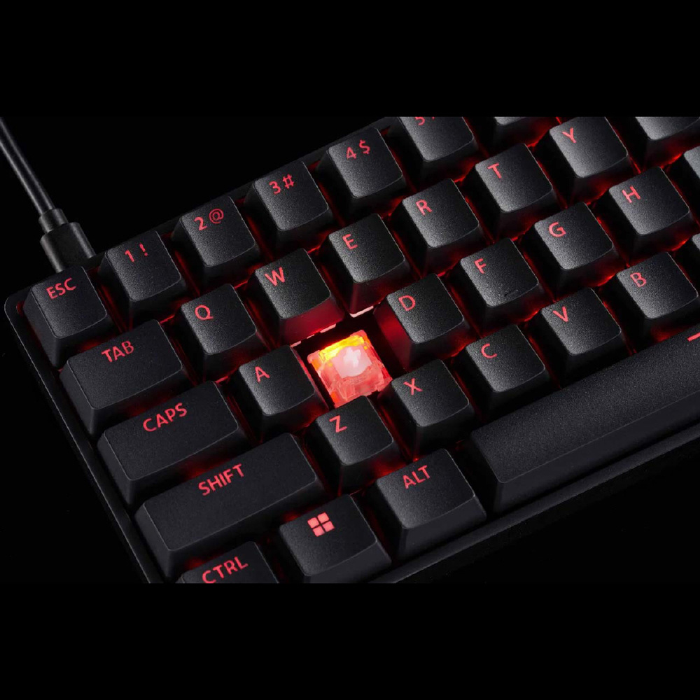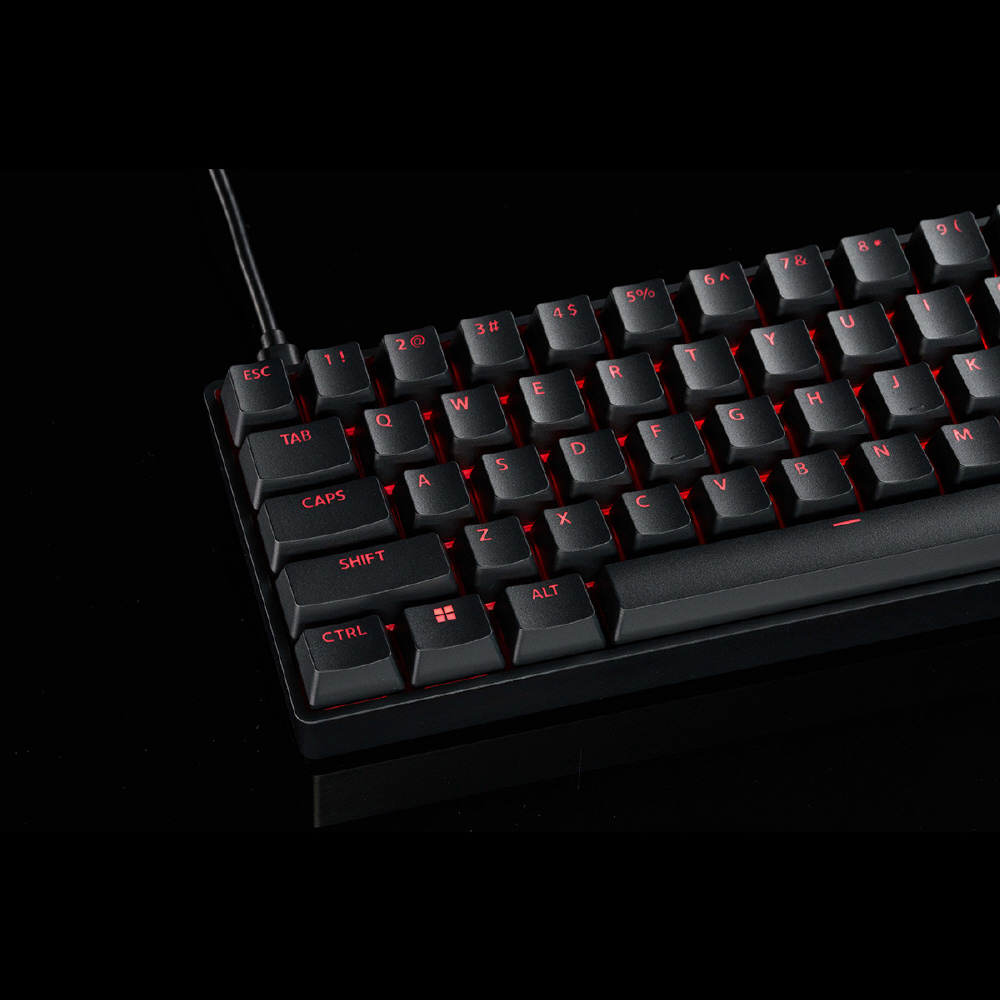 0.02 mm単位でのアクチュエーションポイント調整や8000 Hzの高いポーリングレートによる僅か 0.2 ミリ秒の低遅延など、eスポーツに求められる性能をコンパクトな65%筐体に搭載しています。